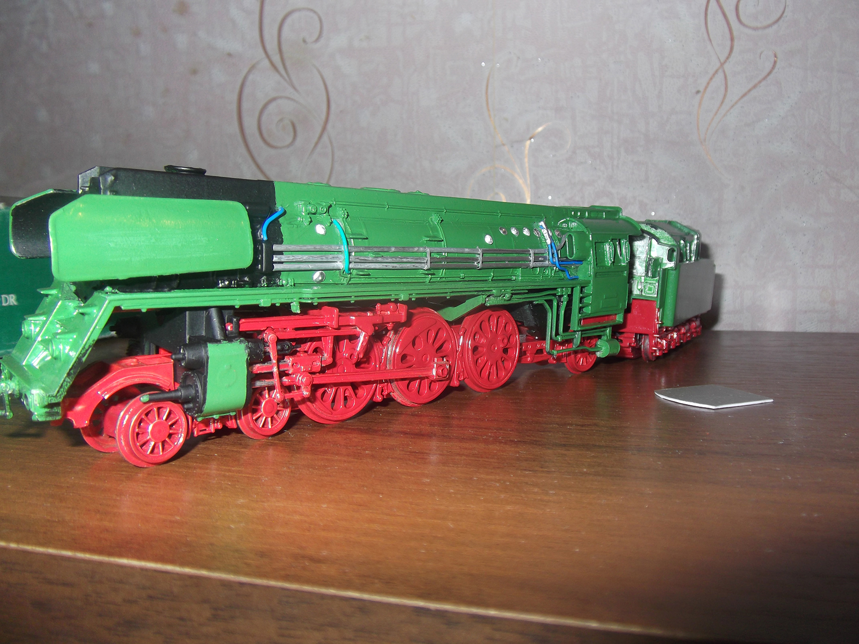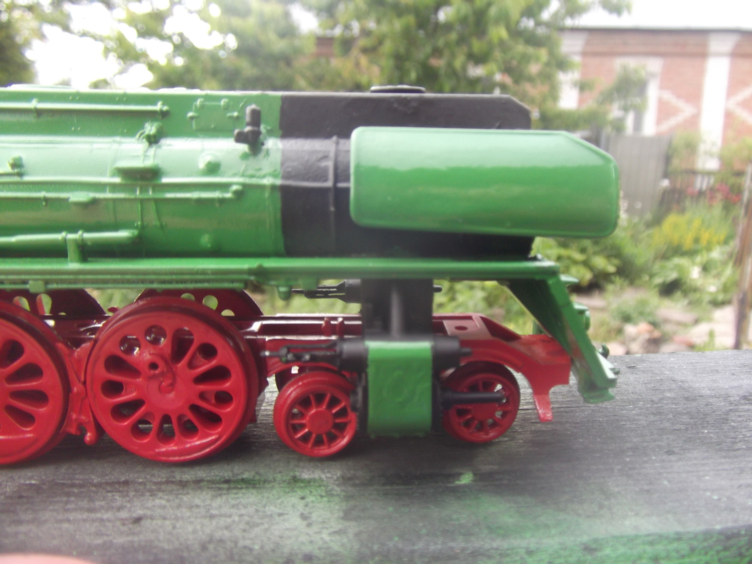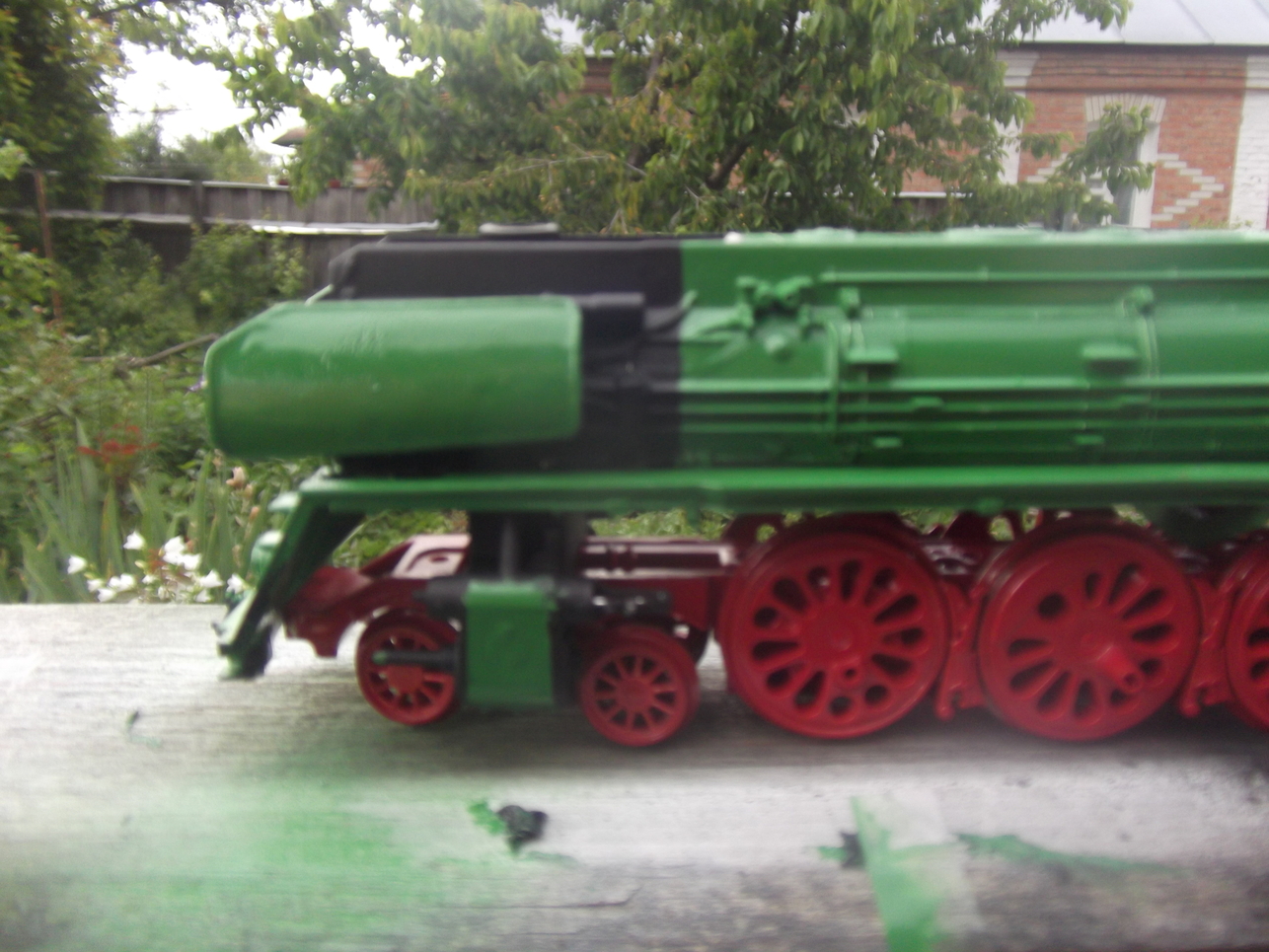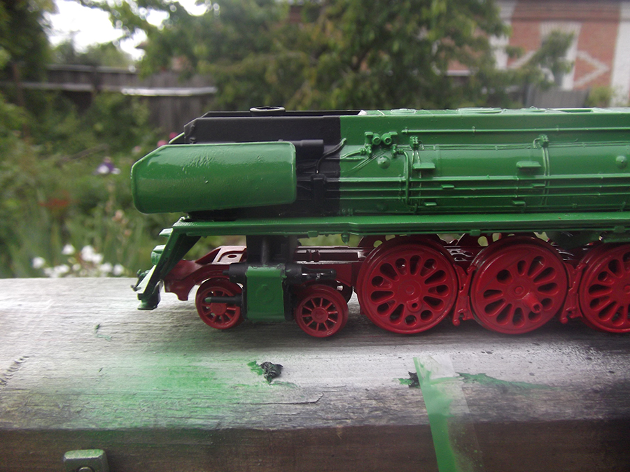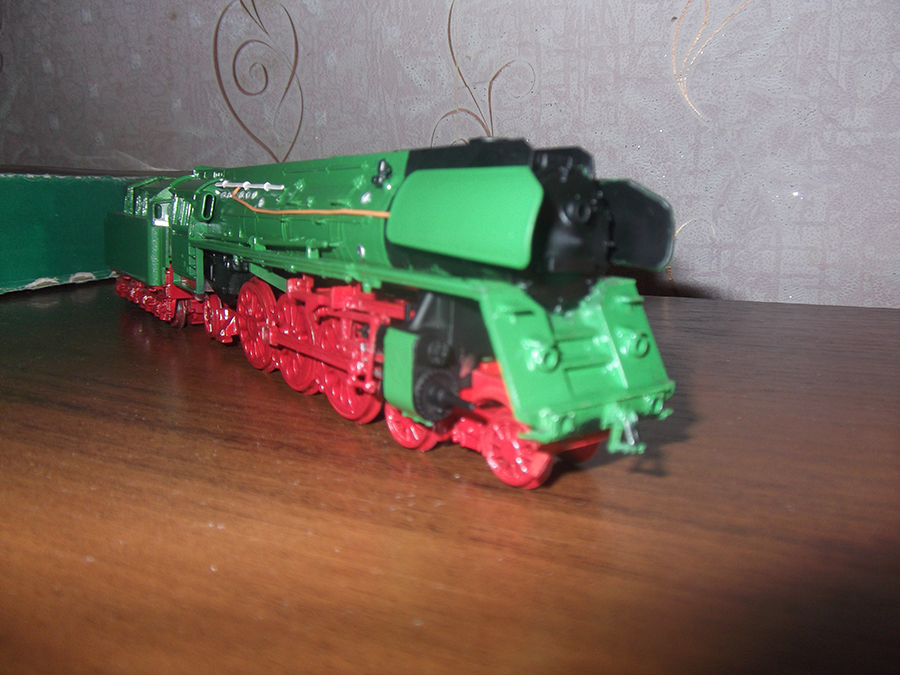 Черным будет котел спереди, тендер сверху, буфера и пр. мелочевка. Паровые машины обязательно зеленым добавить нужно.