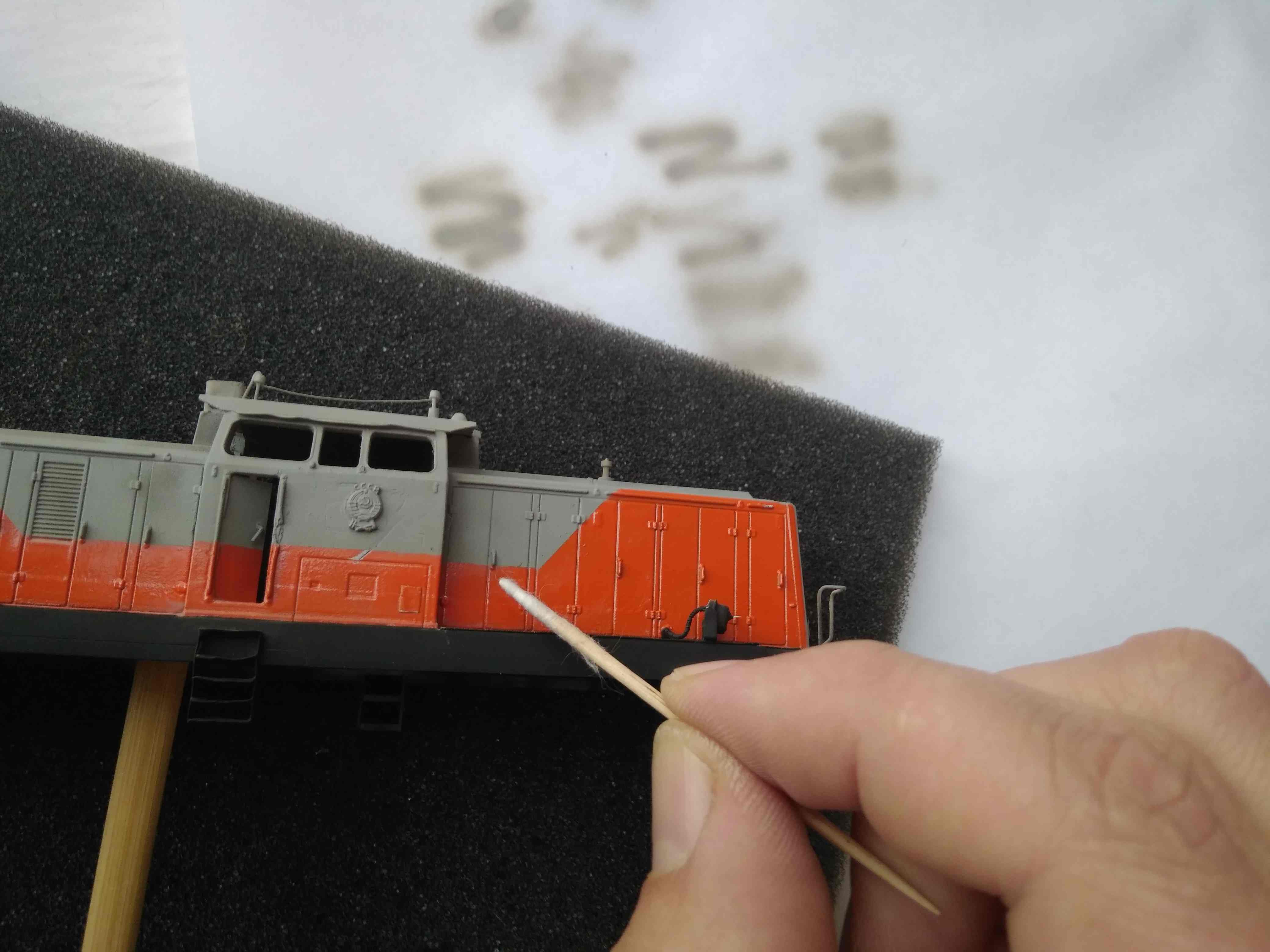Серый тон замешан на базе серой грунтовки Tamiya primer, вот она мне нравится, такая послушная краска, прелесть... Вот так маску из малярного скотча делал ... Вот снимаю маску через час... и подтираю "пыль" залетевшую под скотч, совсем чуть чуть её было...
