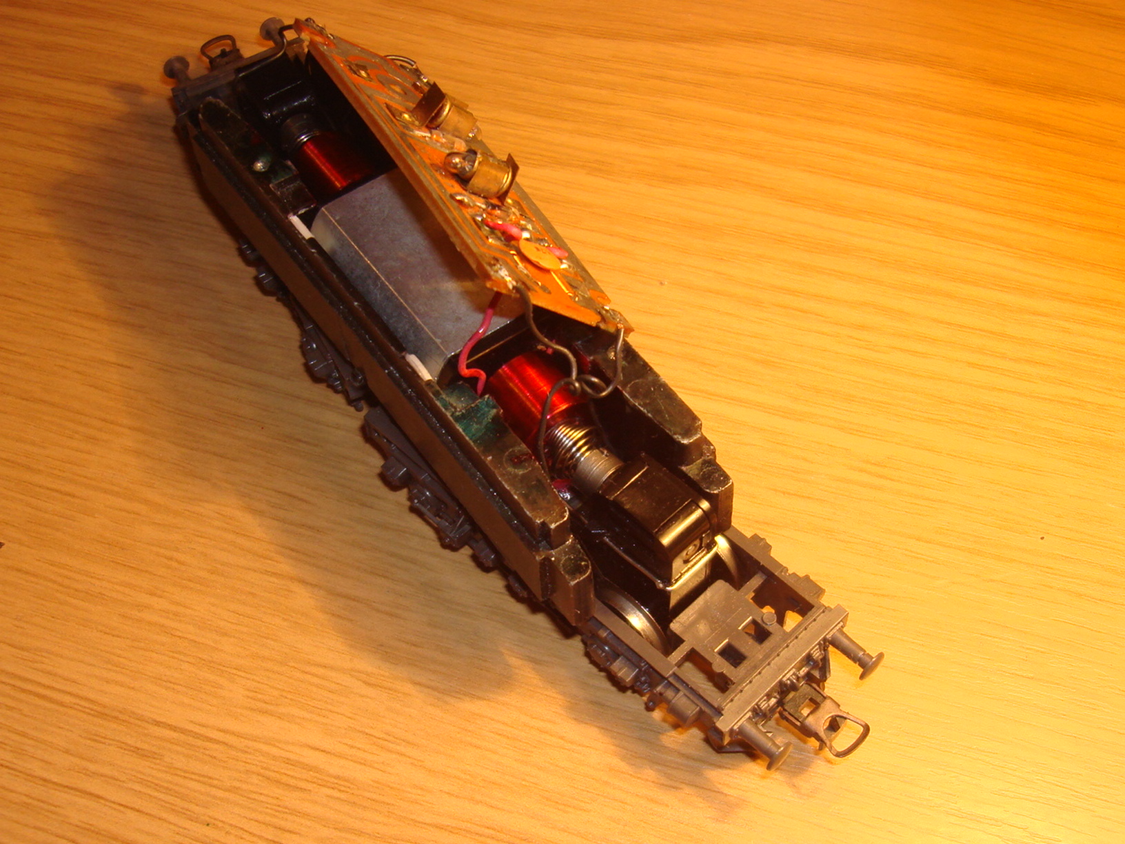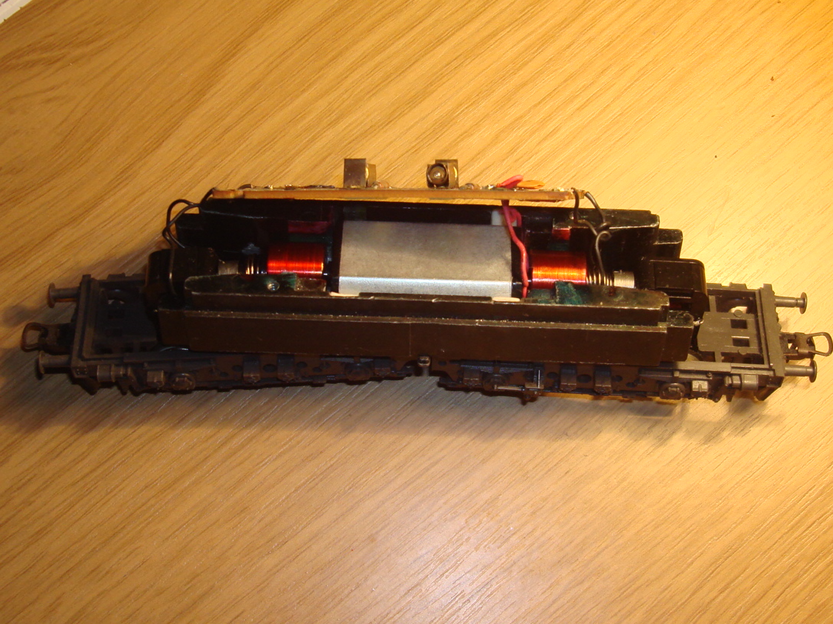 а ходовка осталась. Обычная, в общем-то, конструкция - двигатель в центре, привод через карданы на две тележки. Двигатель трёхполюсный, никаких маховиков.