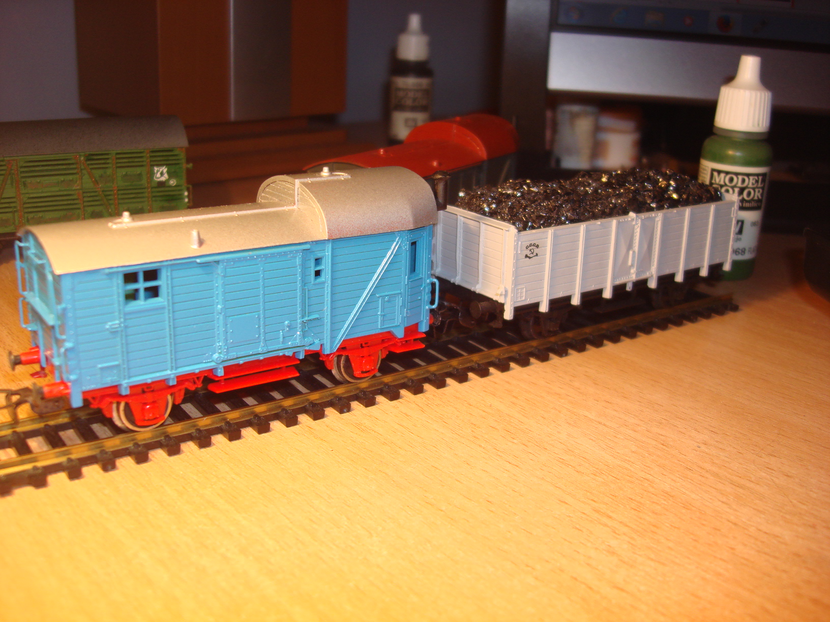 декалей и состаривания.Синий бригадник хоть и с ажурными поручнями,краска