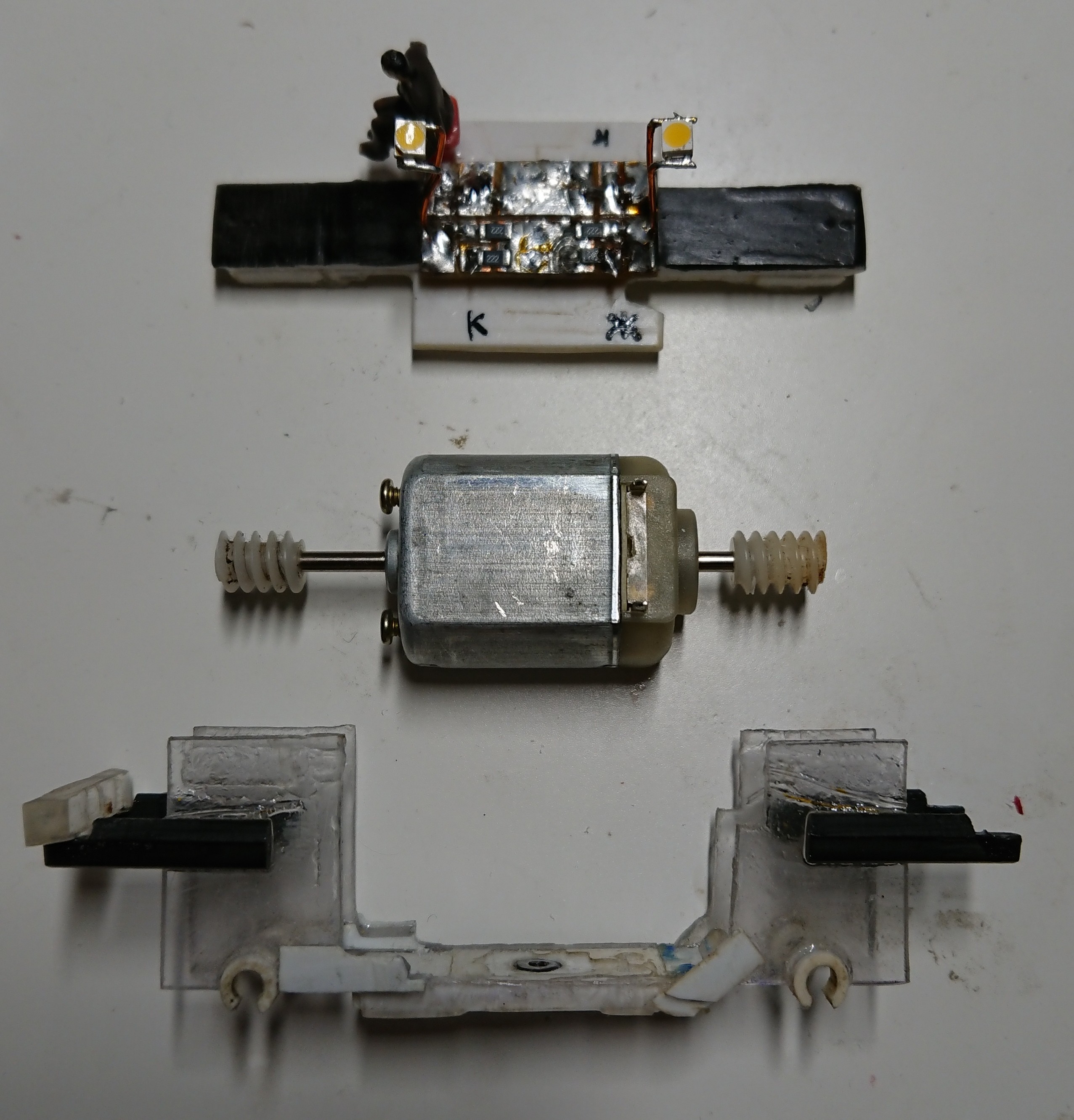 Родной мотор ещё позавчера ушёл в утиль. На фото уже новый мотор - без маховика и с одновитковыми червяками.