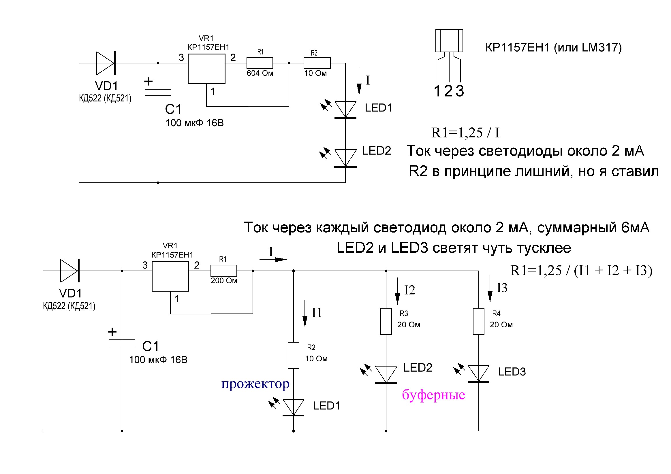 Стабилизаторы VR1, VR2 - LM317 или аналоги (КР1157ЕН1) в корпусе ТО-92 или SO-8.