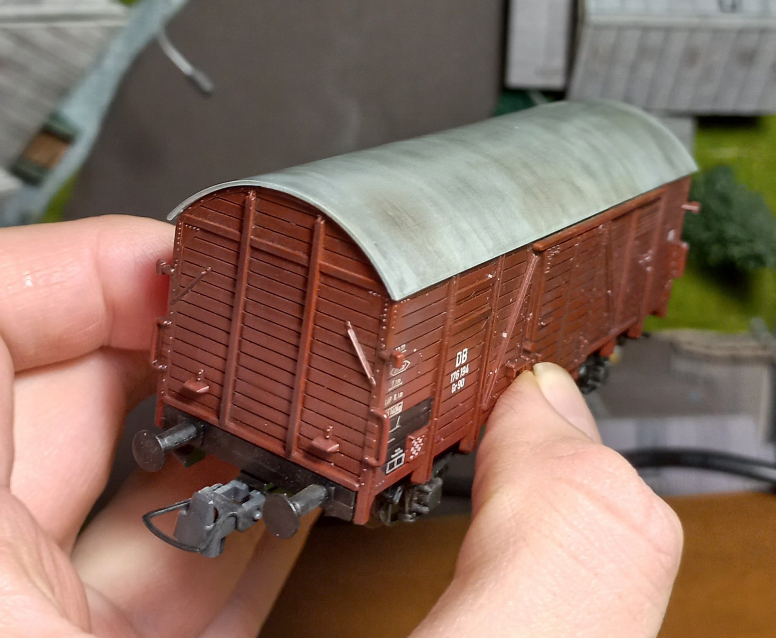 Наступна спроба нанести сліди експлуатації. Простий Roco з набору, із блискучого пластику. На жаль, не допер зробити фотку до процесу, тому буде чесно вкрадена з мережі.