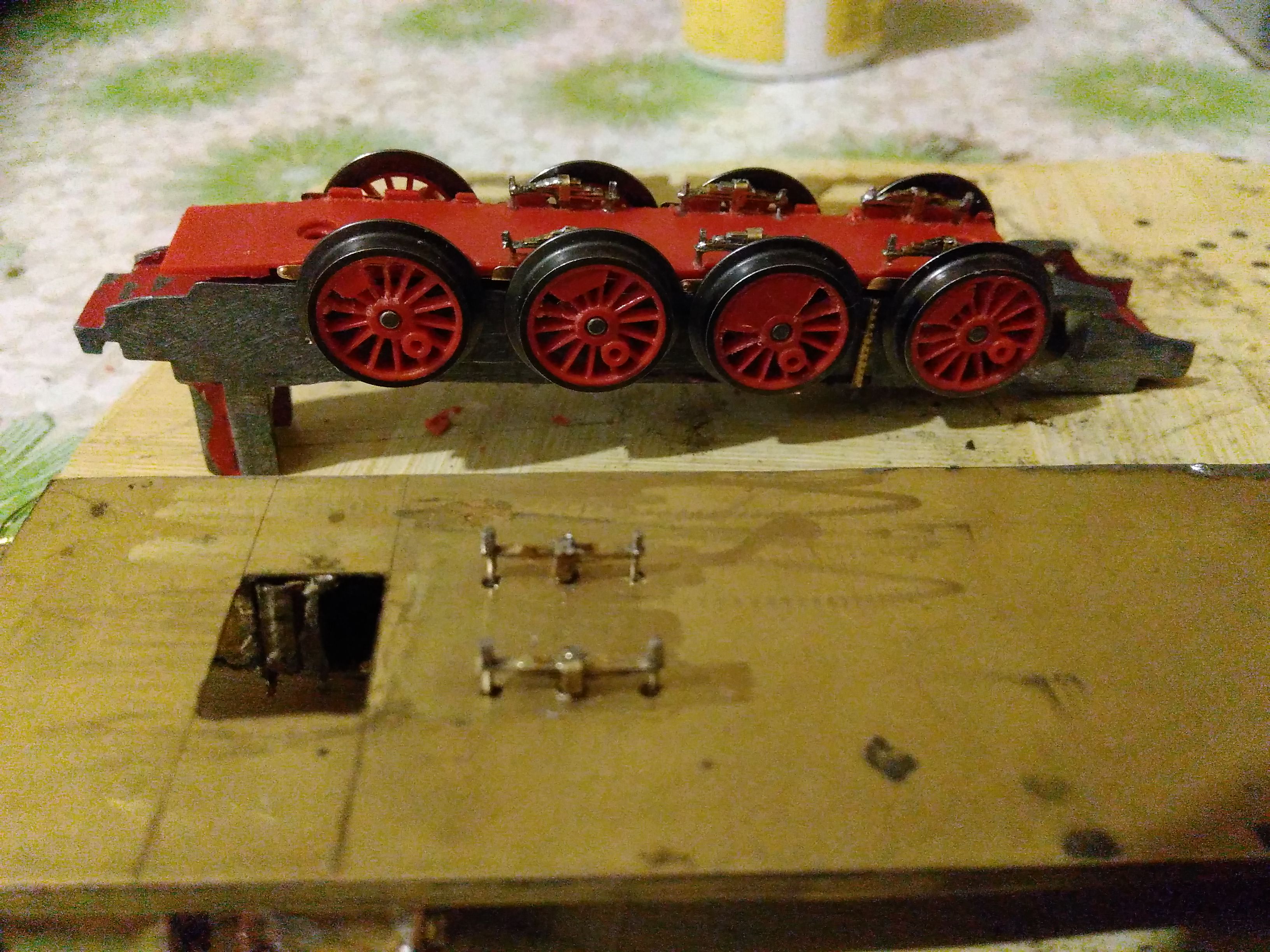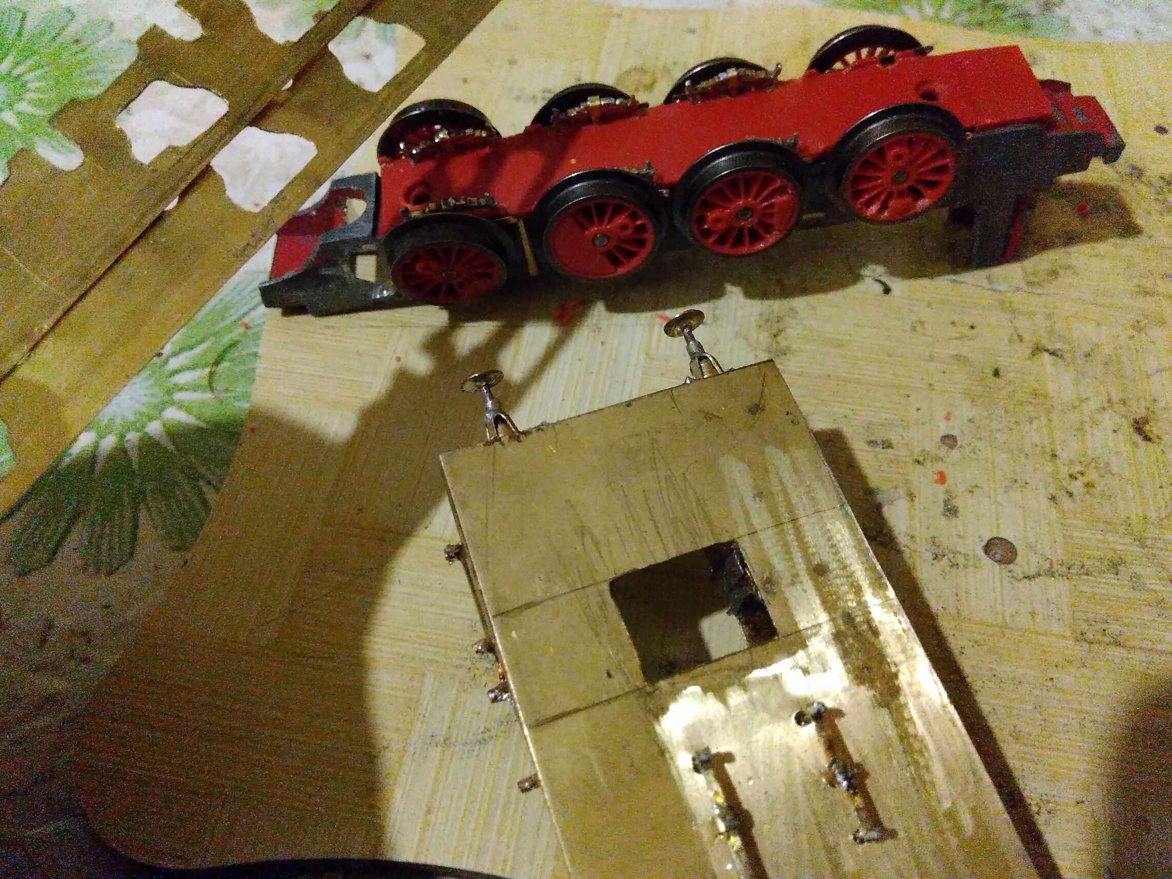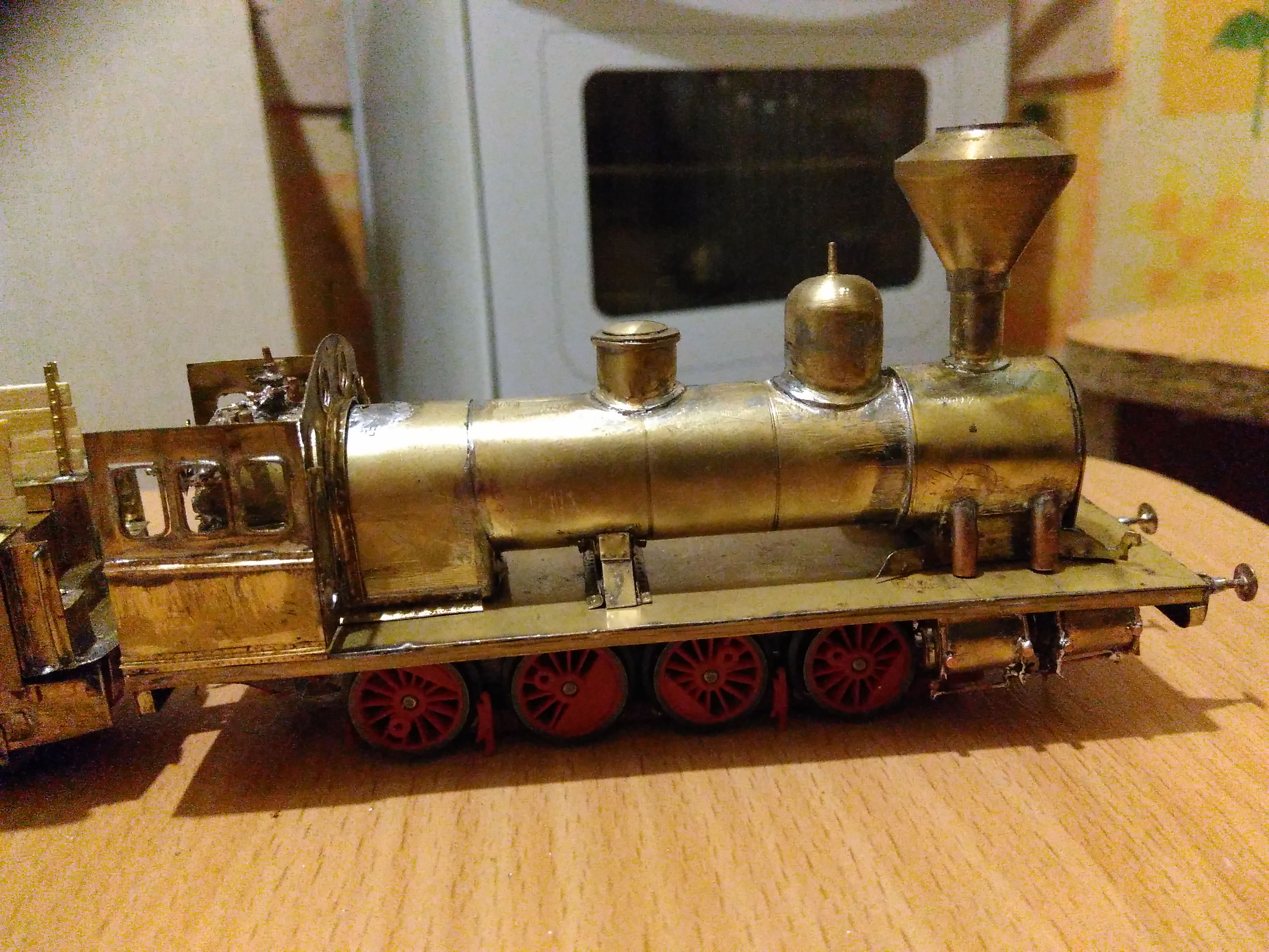 Небольшое продвижение. Доделал но не чистил паровые машины. Подчистил и добавил деталей в тендер. Немного подчистил паровоз. Добавил заготовки под сиденья. Ну и запилил болванки рамы. Остро стоит вопрос о замене рамы. Стоит овчинка выделки или нет? Мне просто очень не нравится та железка, что осталась, но при замене произойдет потеря веса. По тем схемам, что есть и фотографиям восстановил вид рамы. Заметил также, что рама менялась! Но очень не хочется возится со токосъемником.
