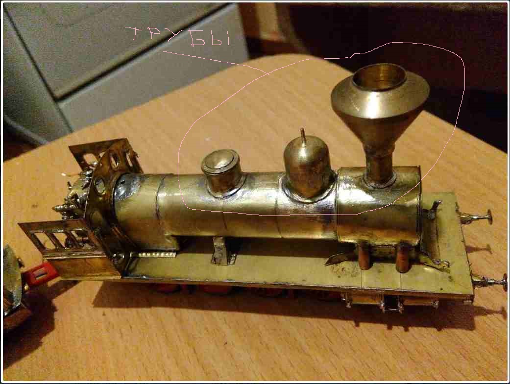 Компоновка. Скручиваю, спаиваю и загибаю. Где запаиваю и подтачиваю. Трубу пытался токарь выточить но не вышло и отказался. Но я ее все равно переделал и спаял. Сначала сделал дымовую для угля, а потом подумал, что совсем нету ничего с дровами) На ней видно изнутри.Barbosa_ писав:Вилен, мне вроди бы все понятно как ты делаешь детали, но вот эти трубы меня очень удивили, ничё не пойму, как ты их сделал? Такие ровные, с котлом касаются идеально! Здорово.