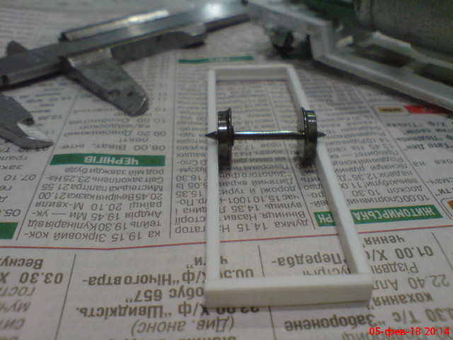 Всё там у Валерия правильно, ничего не заужено. А длина оси колёсной пары Trix, например, как раз и составляет 24,5 мм. Отсюда и проблемы. Решал аналогичную проблему. Рама шириной 24,5 , буксовые узлы от семиоконника старого Пико. В буксах засверлил посадочные места для оси. К сожалению, такое решение не позволяет установить металлическую скобу, отлично зарекомендовавшую себя на двухосных вагонах старого Пико, но пришлось смириться. И конечно пришлось очень постараться, чтобы в результате все четыре колеса точно становились в одну плоскость.T-1000 писав:По фоту она заужена...