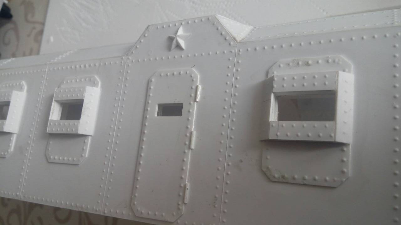 Также обратить внимание на окна, они как бойници в данном случае. Немного грубовата выглядит лестница, чуток тоньше нужно. Отсутствуют трапы, почти на всех совковозах, они были.