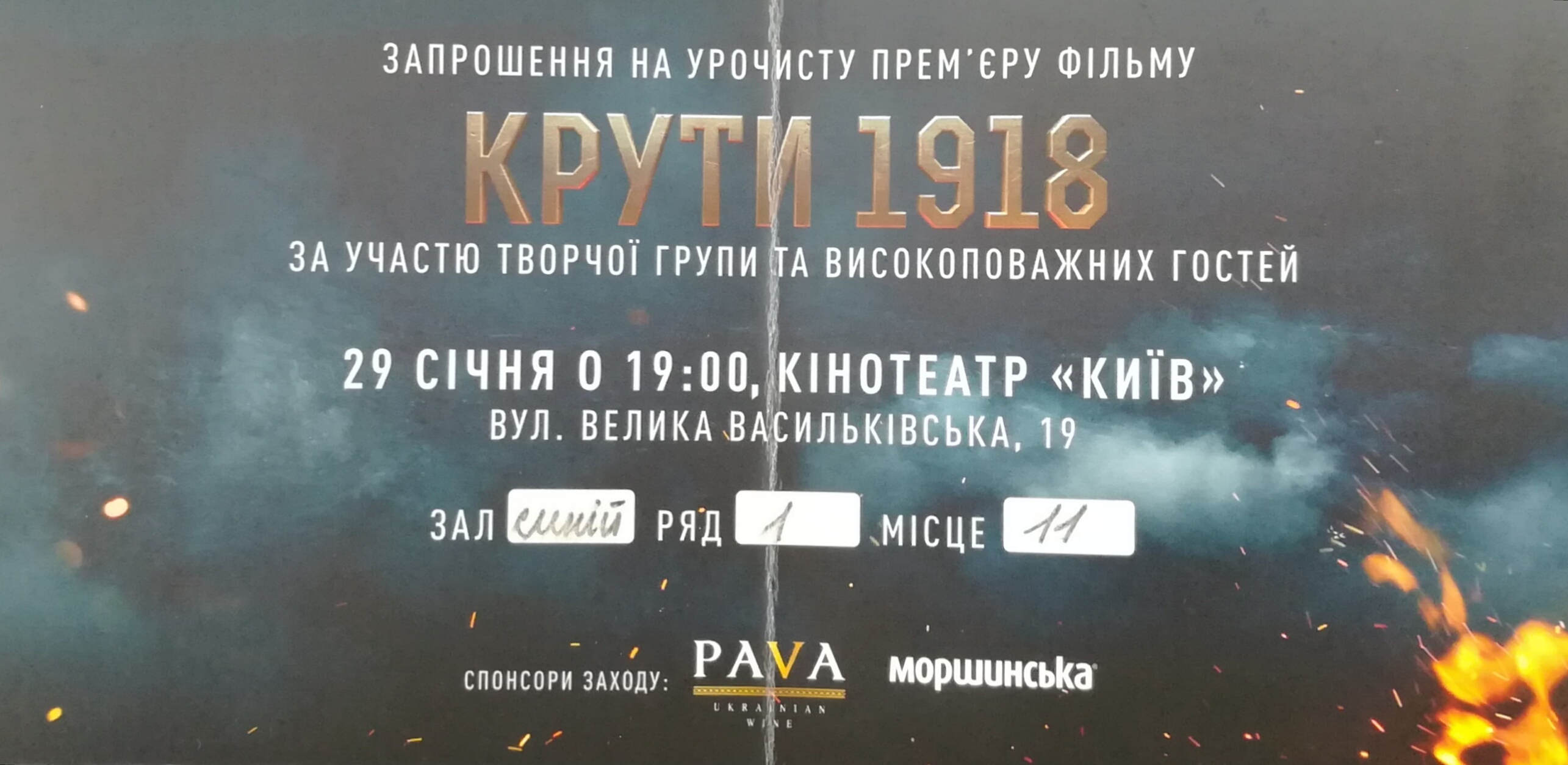 Вчера 29/01/2019 состоялся допремьерный показ фильма "Круты 1918". Мы были приглашены на это событие как непосредственные участники вложившие свою лепту.