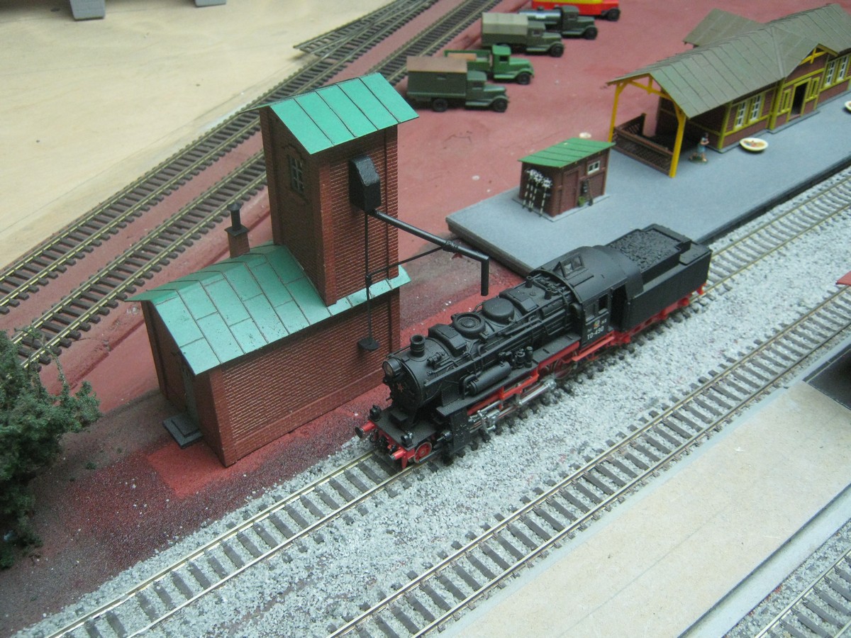 На уровне догадок предполагаю, что такая заправка должна быть не в депо, а где-то на станции, чтобы заправлять паровозы по ходу следования, не отцепляя от состава. В депо - это отдельная тема.