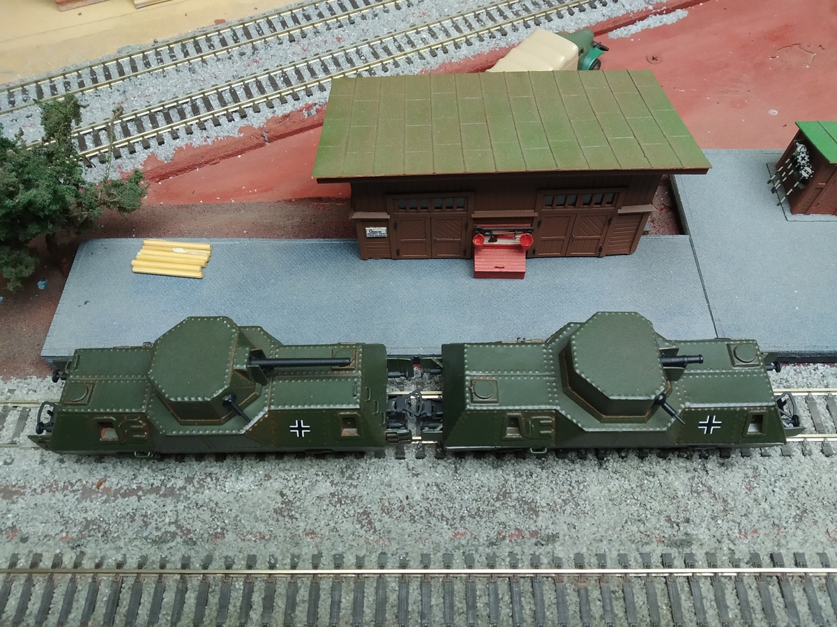 Заложены две бронеплощадки ПВО. Без установок РС. История упоминает, что РС имели лишь подобные бронеплощадки "Козьмы Минина" и "Ильи Муромца". Остальные бепо комплектовались скромнее. Вообще-то исторические реалии таковы, что бепо "Победа" имел всего лишь одну бронеплощадку типа "Стальмост". Но у заказчика имеются свои соображения на этот счёт. Поэтому отметаю сомнения и делаю...