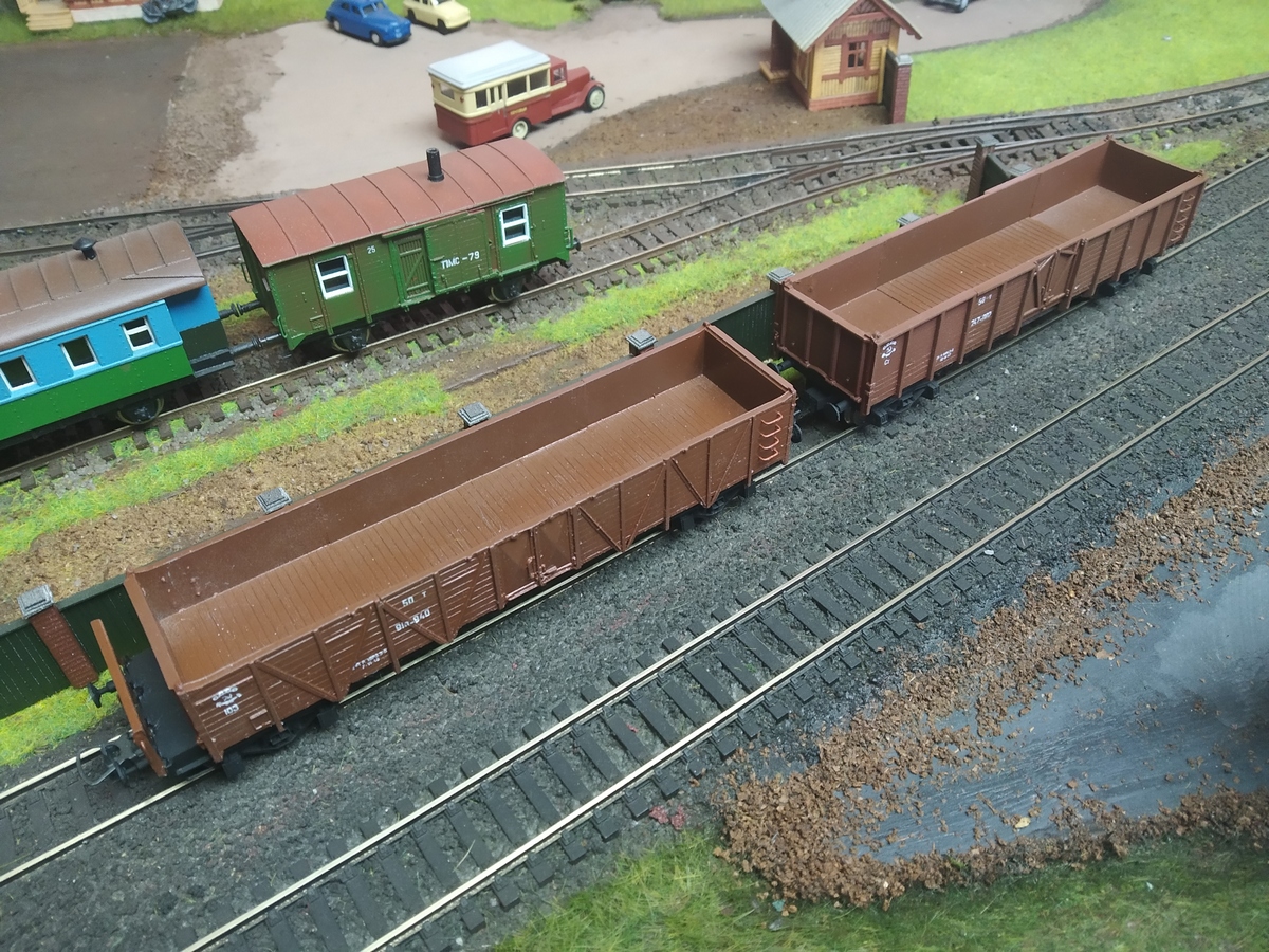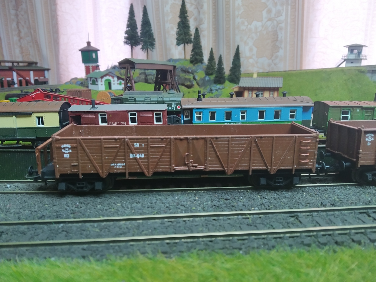 В свете вышеизложенного считаю возможным предъявить сообществу ещё пару вагонов, сделанных в компанию к viewtopic.php?p=36605#p36605 В итоге имеем вот такой состав. Делал исключительно по капризу, из-за невозможности сейчас заняться серьёзными проектами. Ни в коей мере не агитирую и не продвигаю идею подобного творчества. Скажу для примера, что стоимость комплекта относительно нормальных колёсных пар и сцепок на один вагон приближается к 10 у.е. Всё остальное тоже можно просчитать, но в любом случае о бюджетности говорить не приходится...