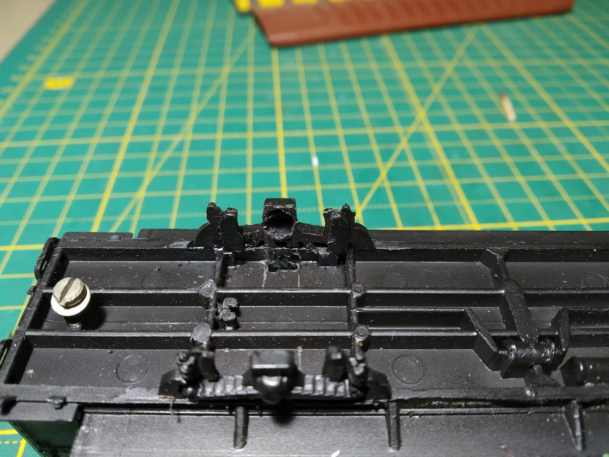 Буксовый узел отрезал и сместил к центру вагона примерно на 1,5 мм. Сразу рассверлил посадочные места в буксах и сделал прорези в днище под свою версию. Далее по классической схеме старого доброго Piko.
