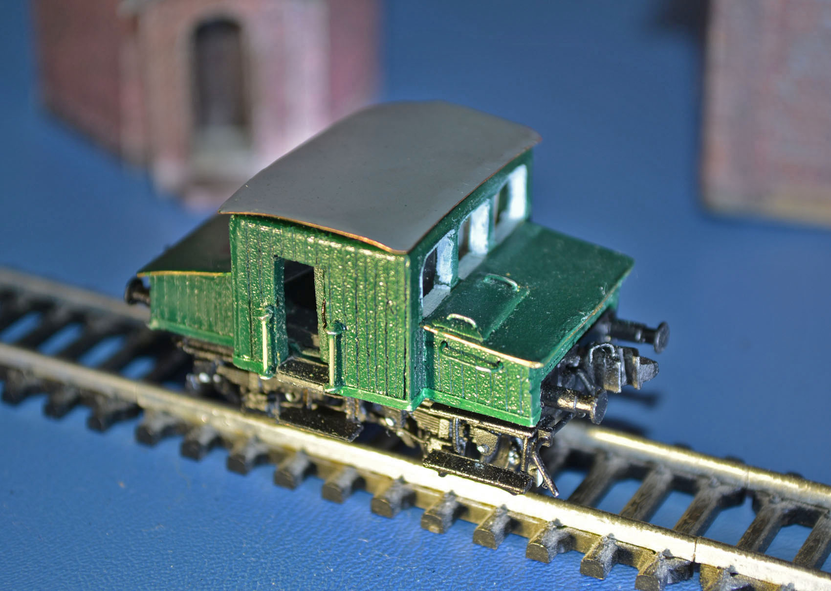 Предлагаю вашему вниманию наверно самую колхозную из своих работ - мотовоз М3/2 в TT. Шасси - обрезка BTTB-шного стандартного двухосника, буксы от трехосных олдтаймеров, тормозные тяги и поперечины - проволока. Надметельники - латунь, пайка. В ход пошли также корпус от 3-х дюймовой дискеты и корпус от матричного картриджа (сырье для кабины). Увы, аппарат стендовый, но с динамическими элементами: сдвигается дверь (сам не знаю, зачем этот выпендреж?), поворачиваются рычаги расцепки автосцепок. Сами СА-3 (точнее то, что получилось) выгрызены вручную из литников, хвостовик латунный, взаимозаменяем со стандартным Zeuke-BTTB-Tillig. Без мотора все равно ничего цеплять к нему смысла большого нет, потому такое непростое решение. Поручни кабины... деревянные, точнее - "укропные" в проволочных петлях. Надписей пока нет, надеюсь, что действительно ПОКА. Такой вот "сарайчик" получился. На подходе "младший братишка" - МУГ-2. Строго не судите - сплошной ручной труд, никаких "высоких технологий". Да и первенький вот так - почти с нуля.