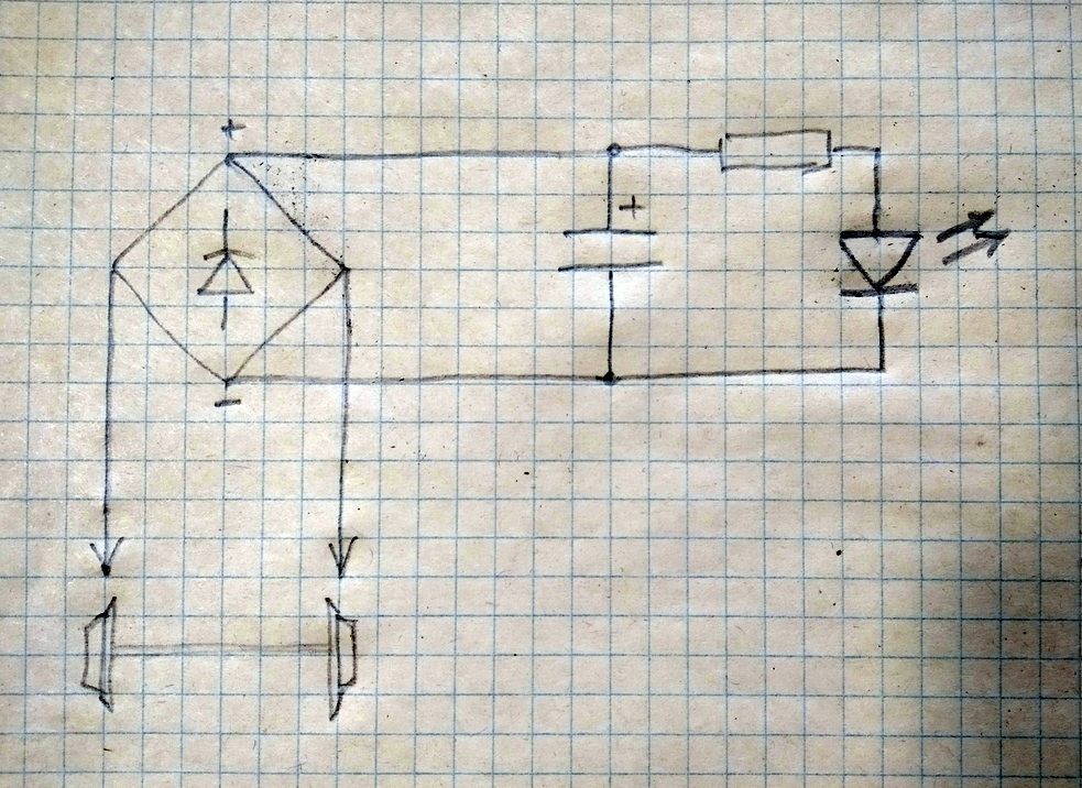 Можете пожалуйста прислать схему подключения с названием/номиналом диодного моста и конденсатора, пожалуйста!!