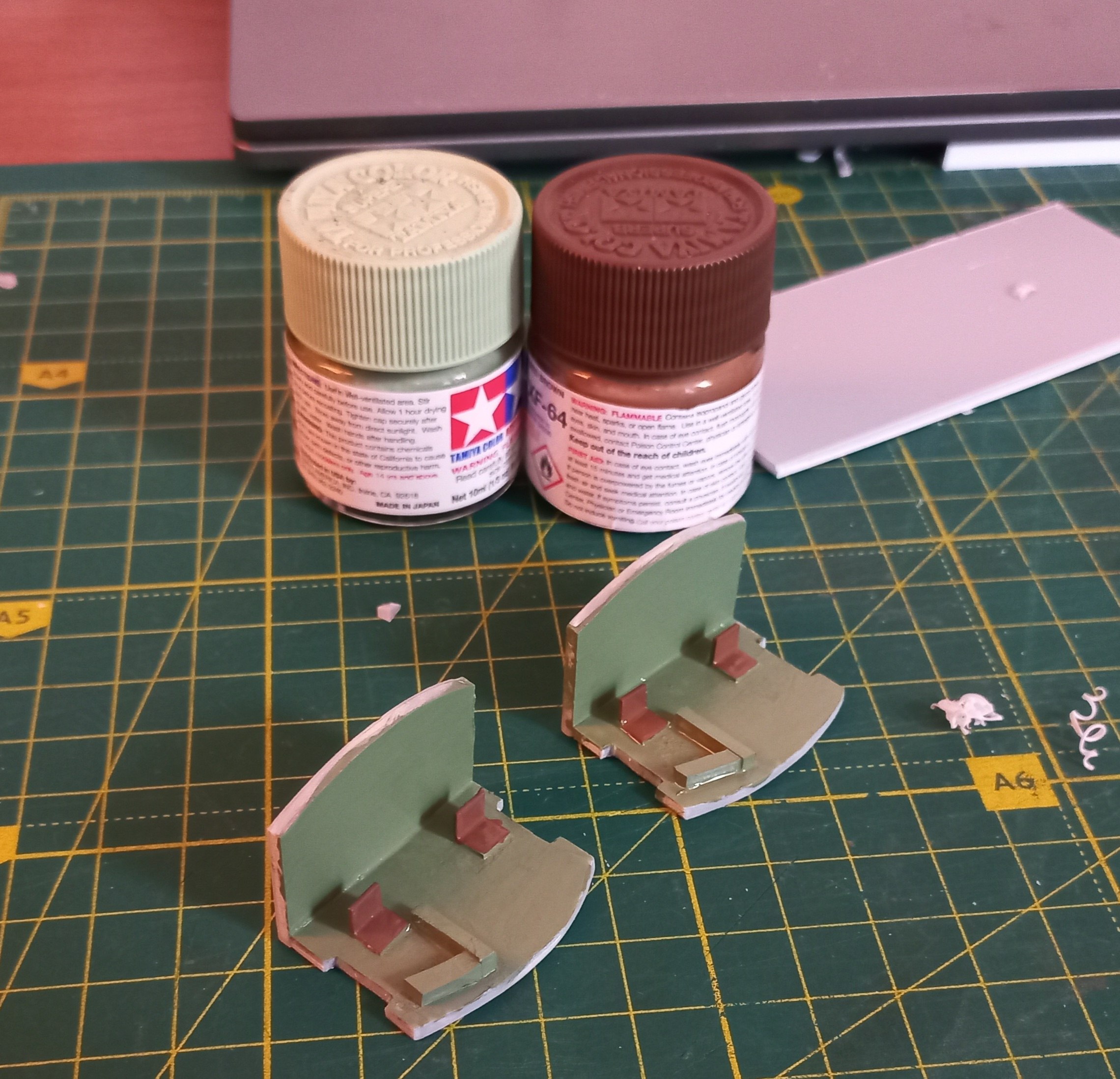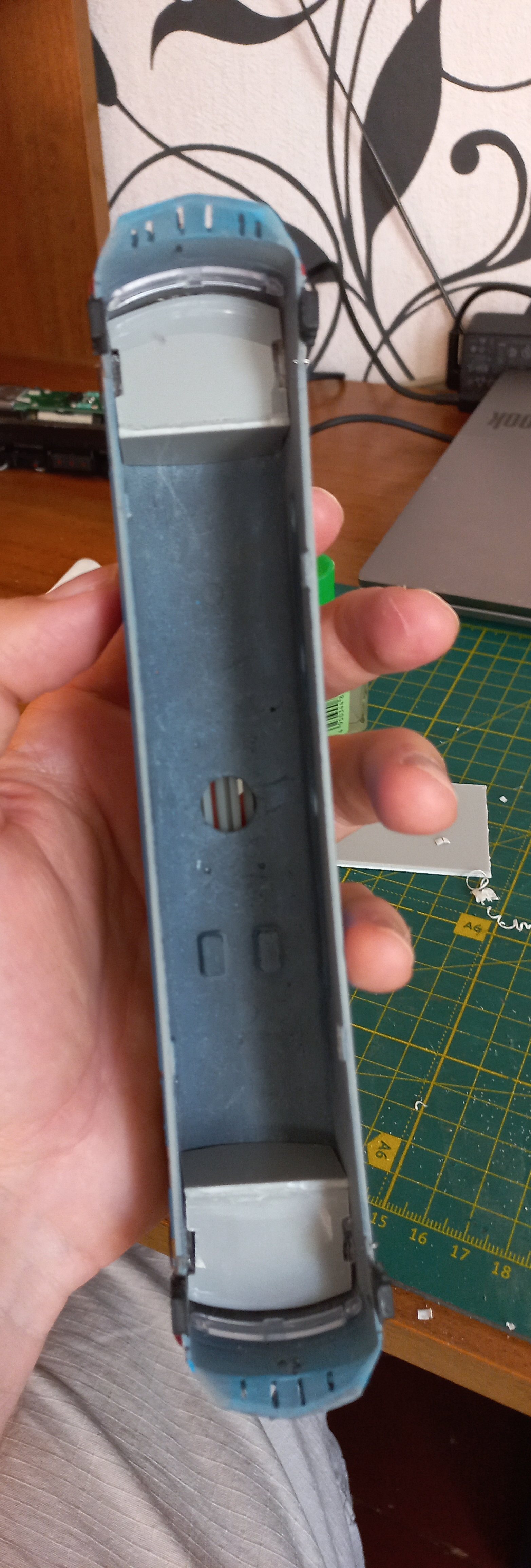 С имитацией кабин чуть сложнее, потому что в оригинале у курского "тапка" их нет. Потому полистирол в помощь. Сильно не заморачивался, потому что стекла довольно мутные, и видно через них не очень хорошо. Нужно было контурно отобразить наличие чего-то там.