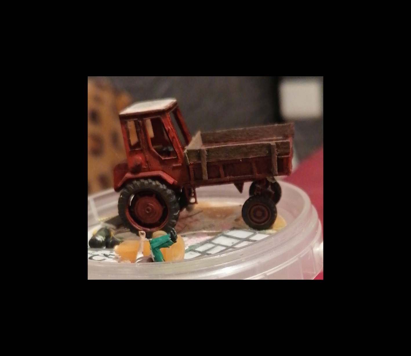Очень напомнило картинку из детва, когда приходил к отцу на работу. Стоял трактор шарик. Ездили на нем яблоки собирать в сад. Да...