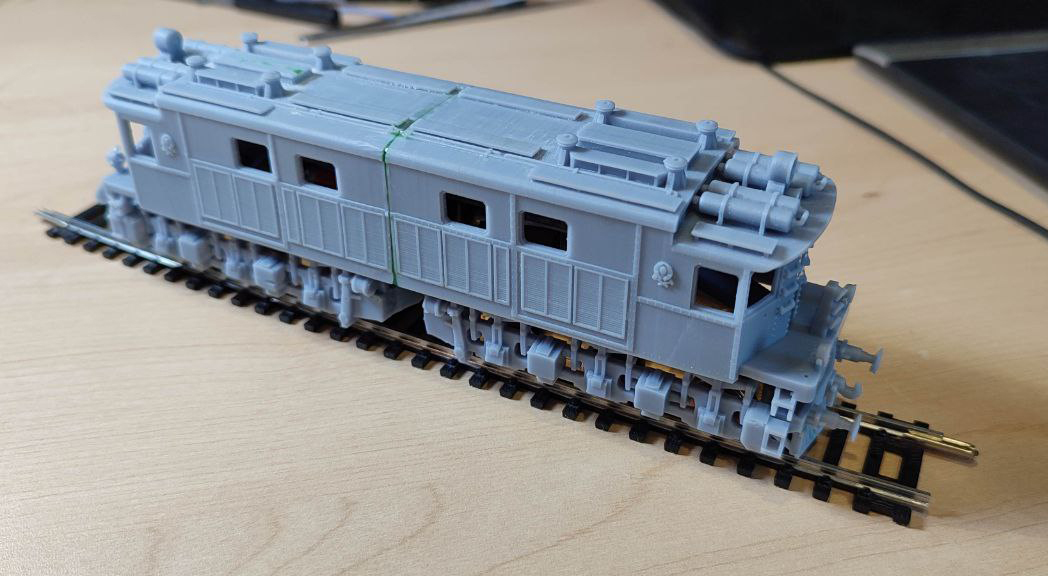 с третьей попытки сделал ходовую в Эм которая меня устраивает. Первая была медленная и шумная, вторая медленная (там максималка была около 20 км\ч). На третьей выкинул лишнюю ступень редуктора, оптимизировал раположение шестерен, что б их меньше нужно было, и чуть доработал конструкцию в целом. Высота ходовой немного выросла, изза чего пришлось прорезать дырку в куче угля и наростить ее высоту. Компоновка тендера вышла очень плотной, почти все свободное место занято свинцом, где поставить плату освещения, надо будет подумать