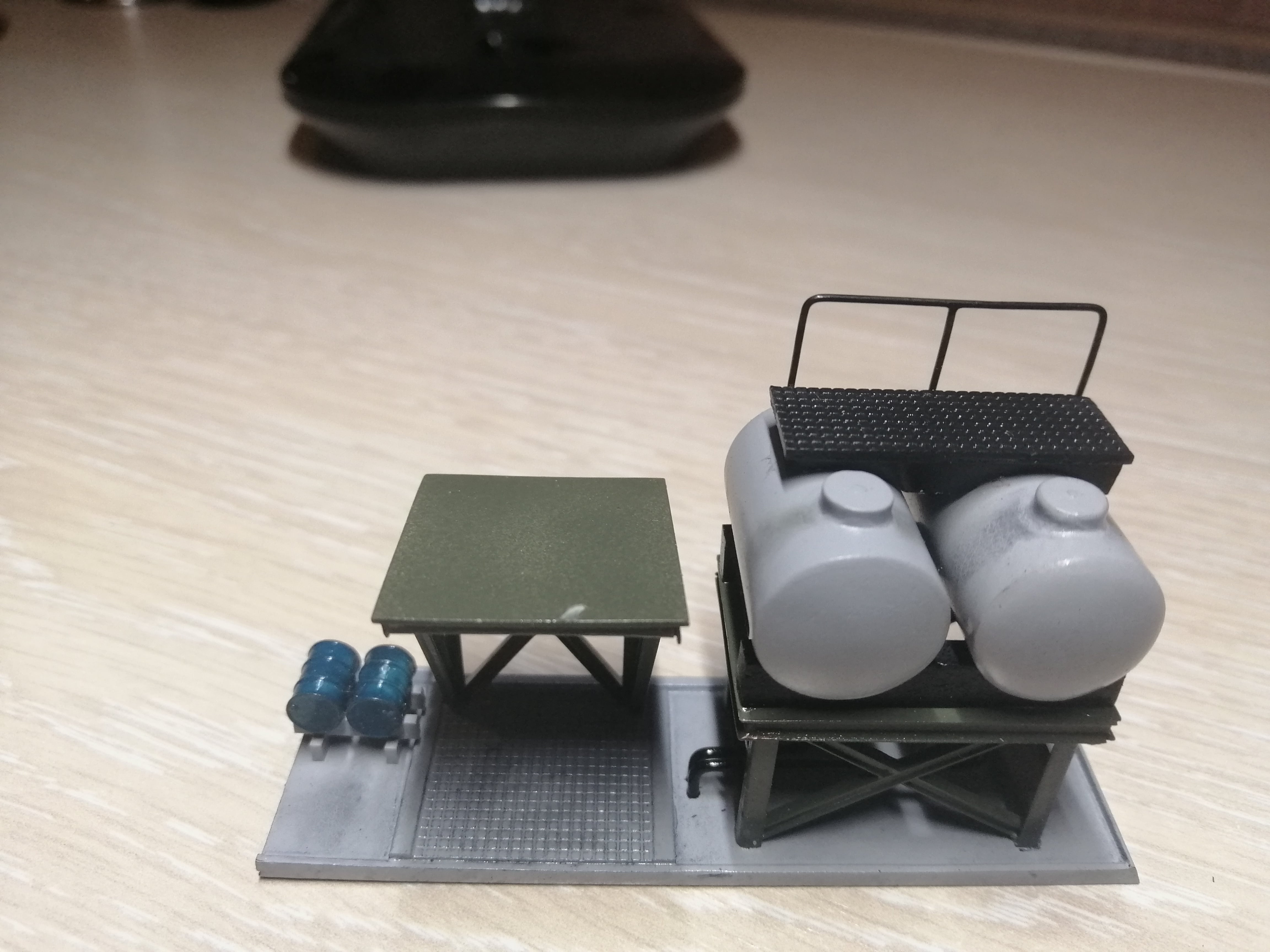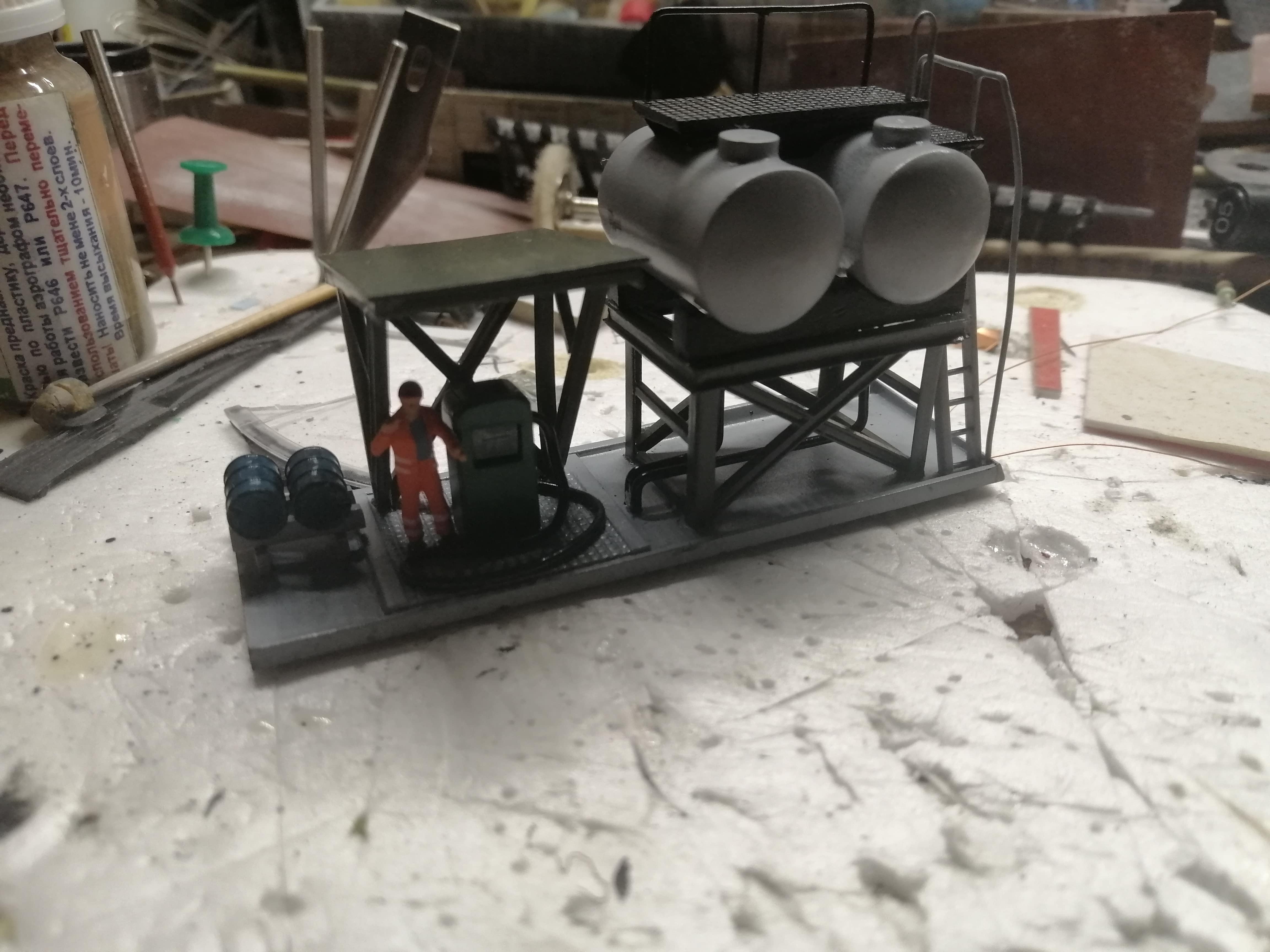 Получилось викроїть пару годин. Продовжив маленьке будівництво. Зробив трап з перилами на цистерни . присобачив як аксесуар підставку на пару бочок з мастилом. За бочки окреме спасибі Тарасу (wildTarik) На сьогодні все. Осталось психануть і зробить саме нудне - драбину на трап. Ну і щоб муза залишилась чаювать - бо ще робить колонку, рубероїд на кришу ну і світло- куди ж без нього.