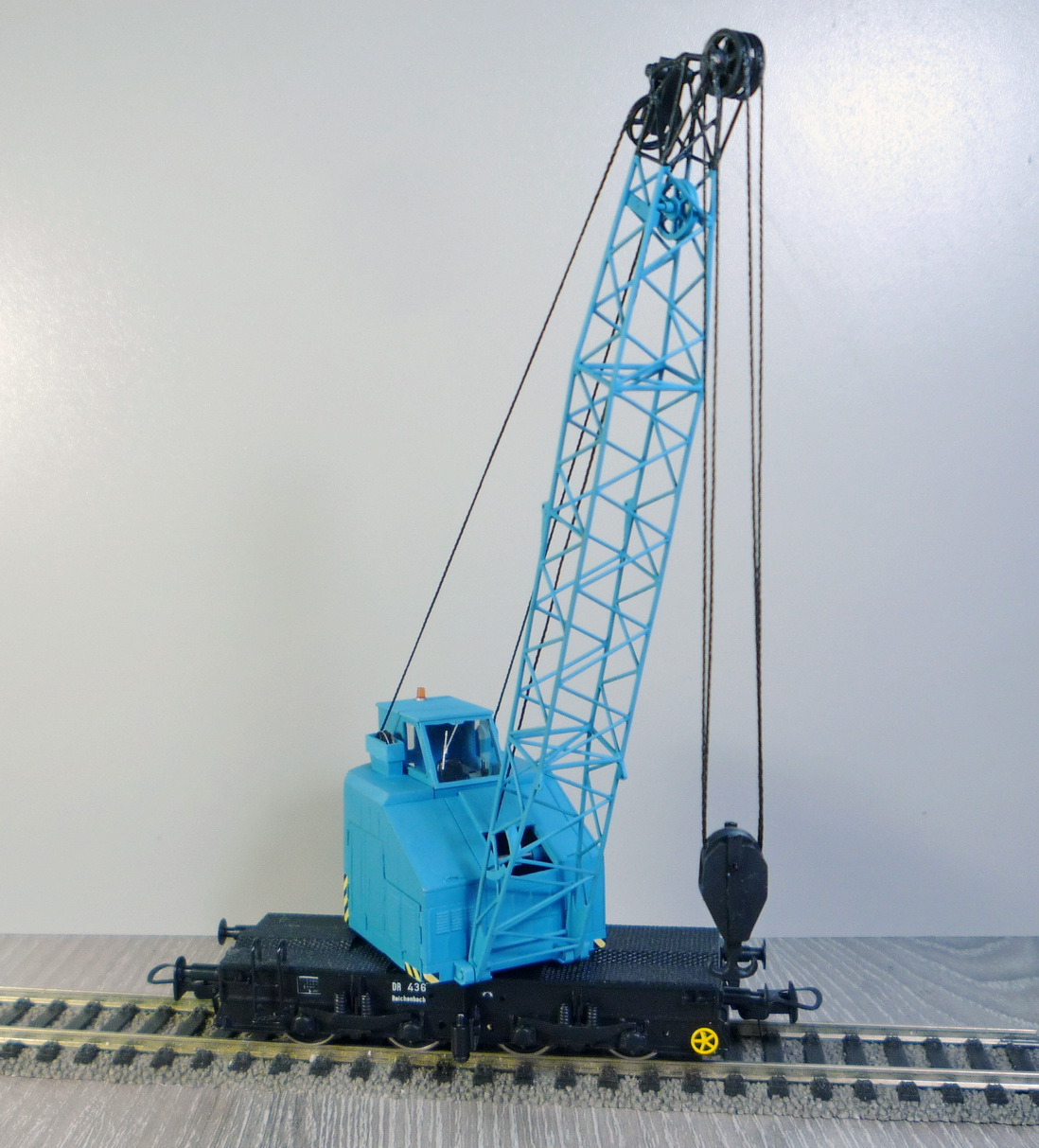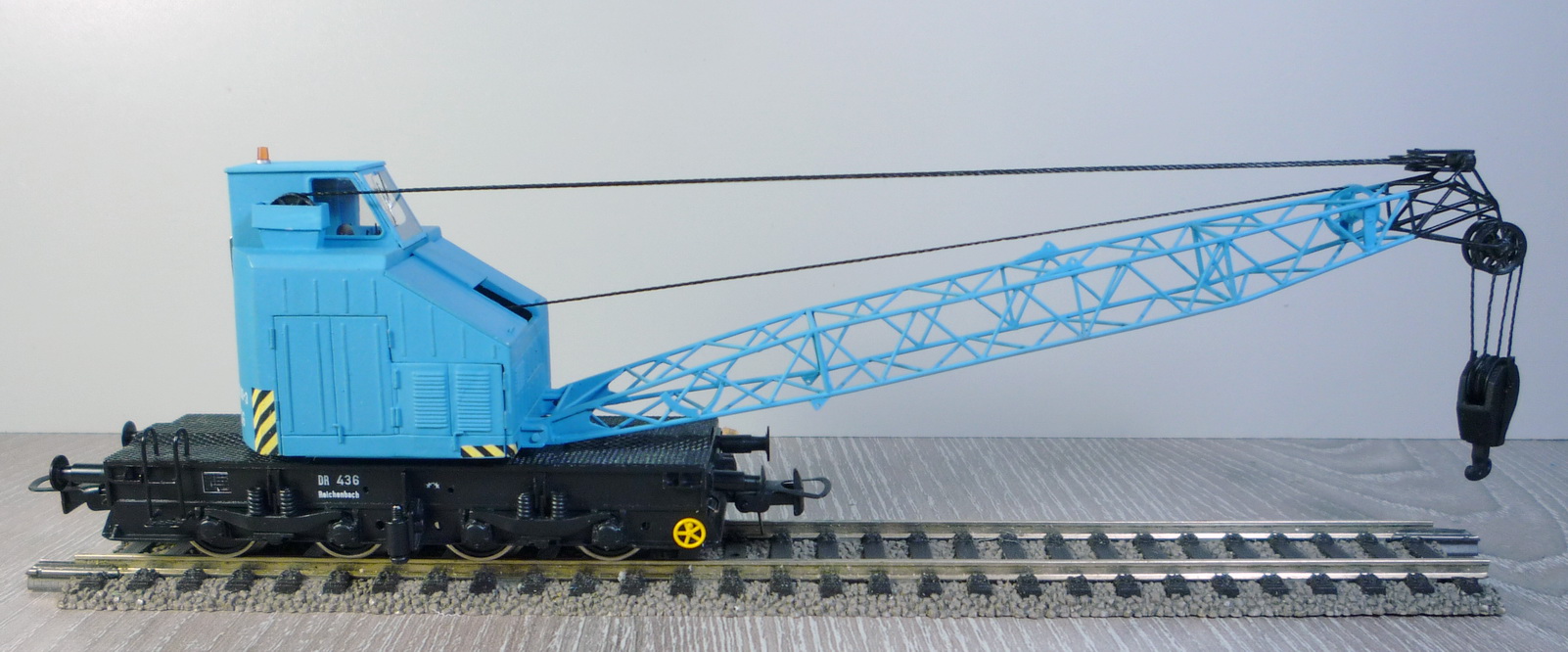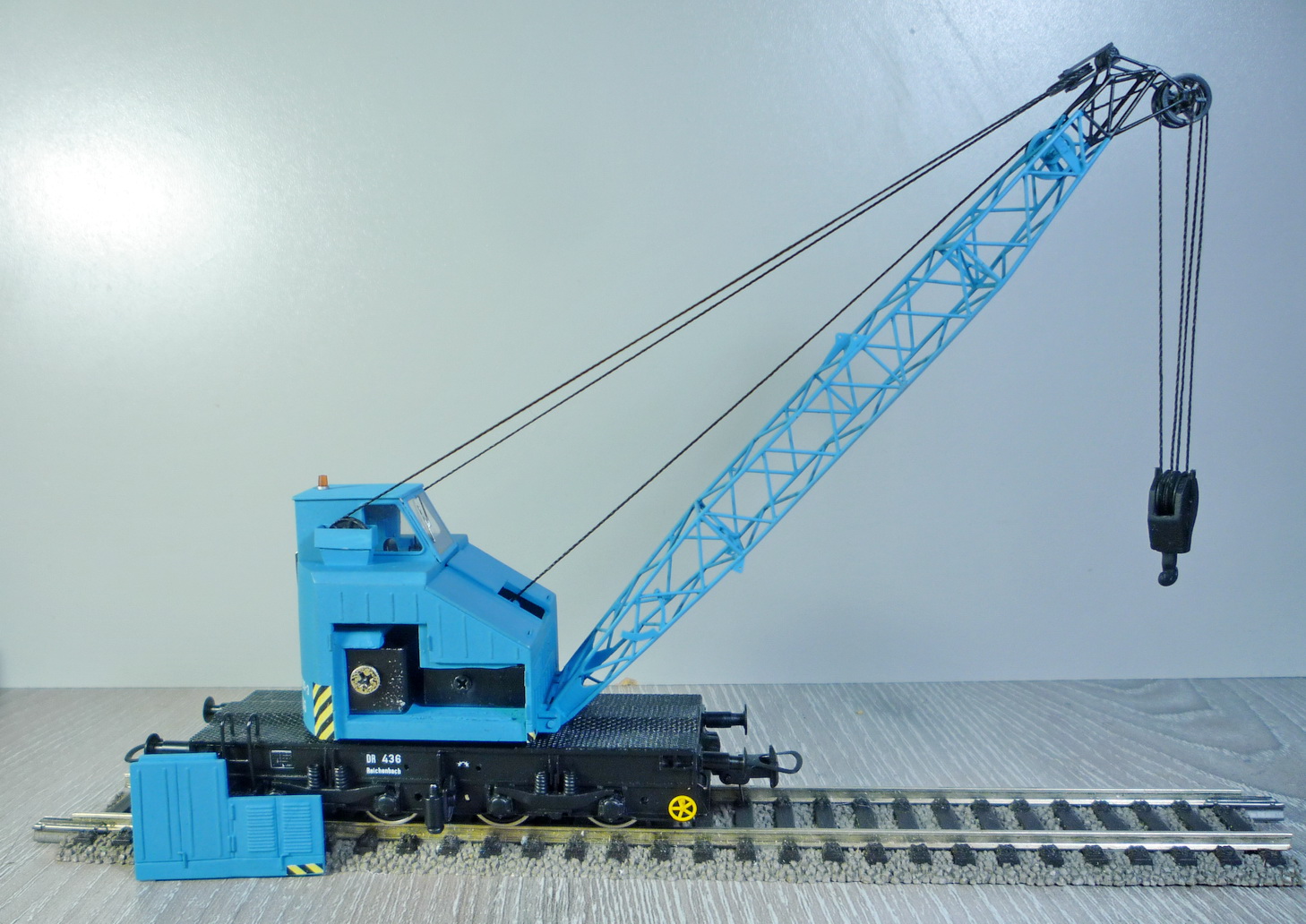Красил аэрографом Хамбролом (нитро), потом глянцевый лак Футура, потом декали (спасибо Vover-у), потом матовый лак - тоже Хамброл. А он, зараза, сохнет несколько суток. Может от старости? Так что кран пока ещё немного липнет. Высохнет, немного затонирую. Черно-жёлтые полоски самодельные.