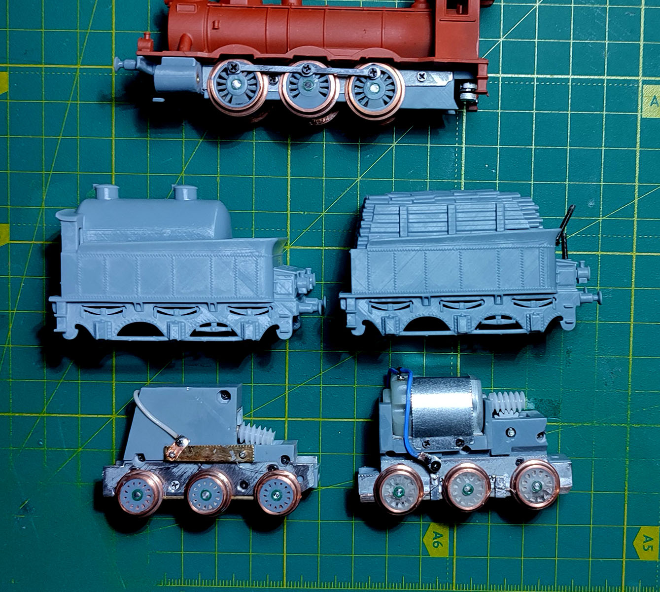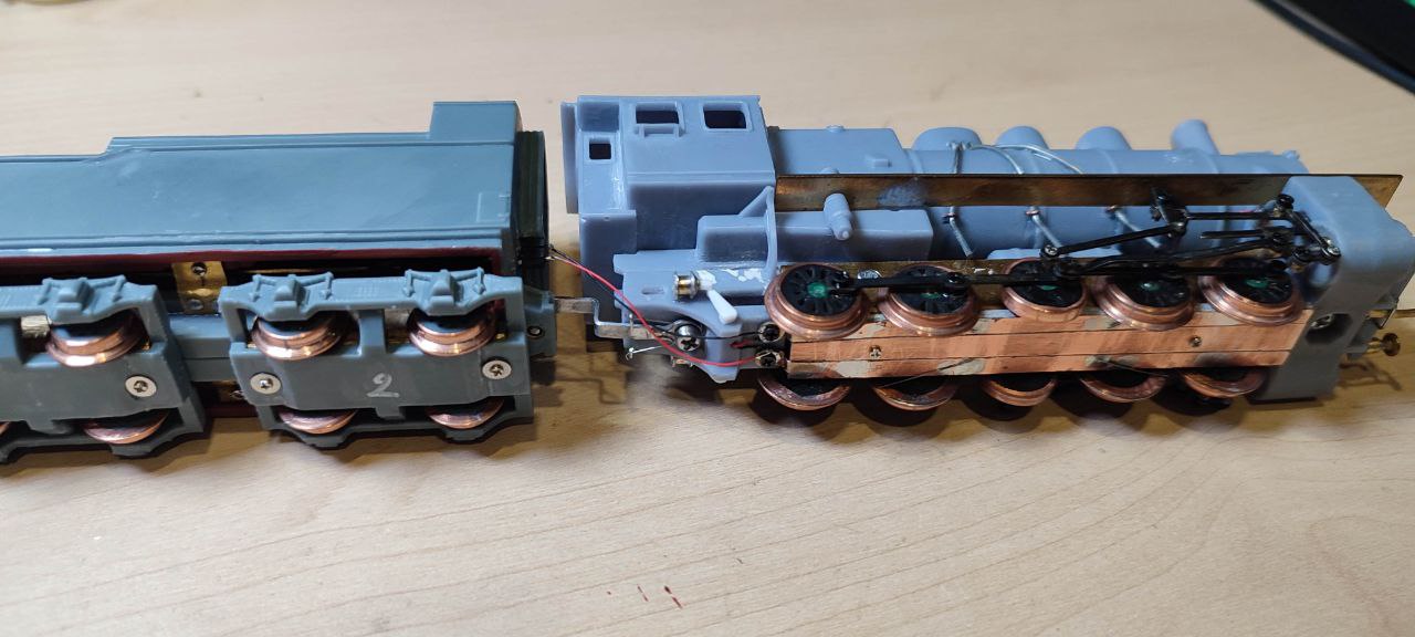 начал делать трехпарку завода Борзиг. В этот раз двигатель с редуктором в паровозе, электрика будет в тендере, токосьем со всех колпар