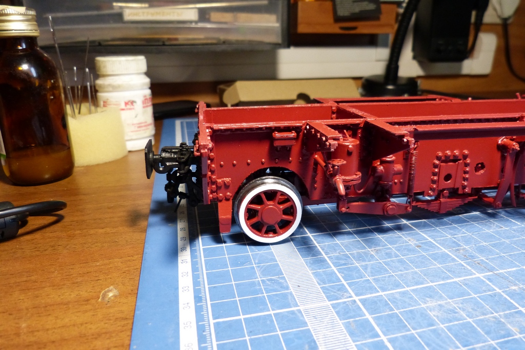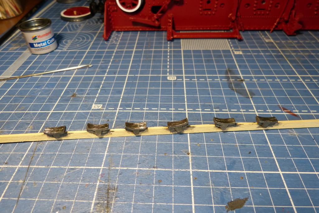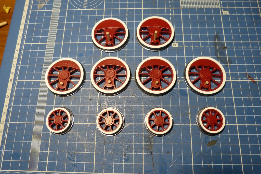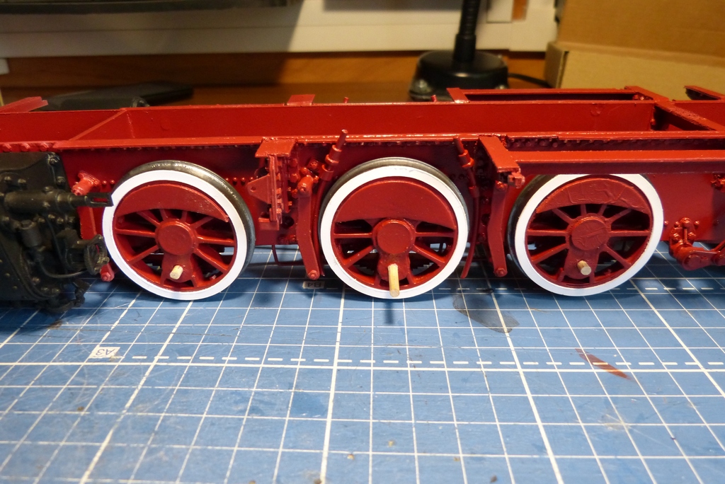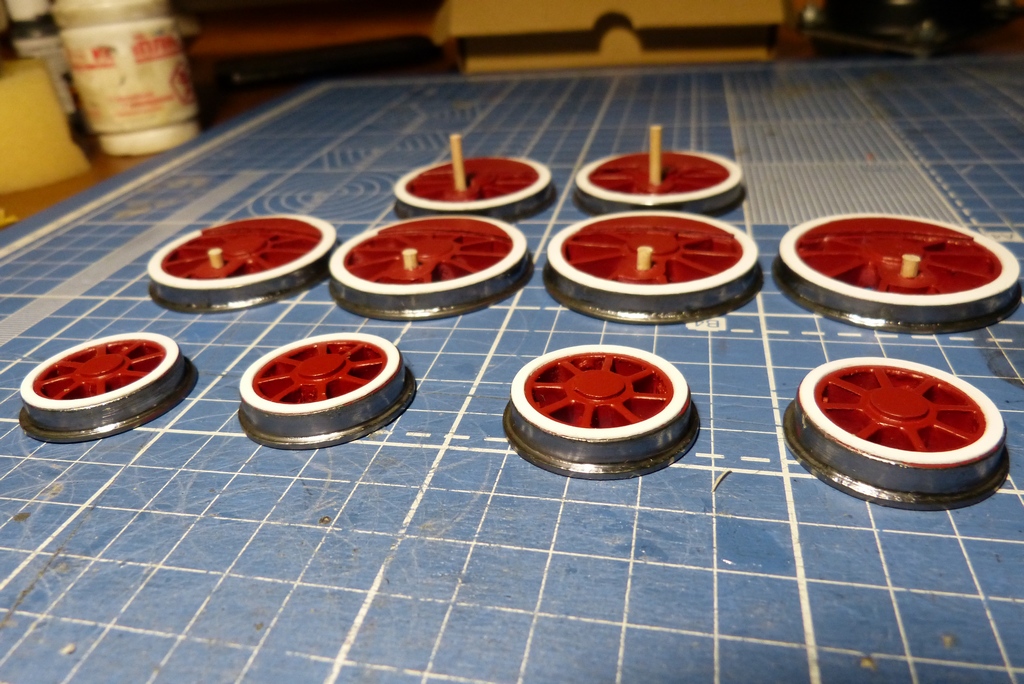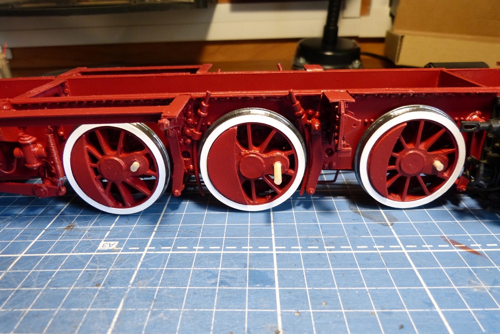Бегунковая поверхность колес это тоже краска,делает Хумброль,краска специально разрабатывалась для таких элементов как накатанная сталь.