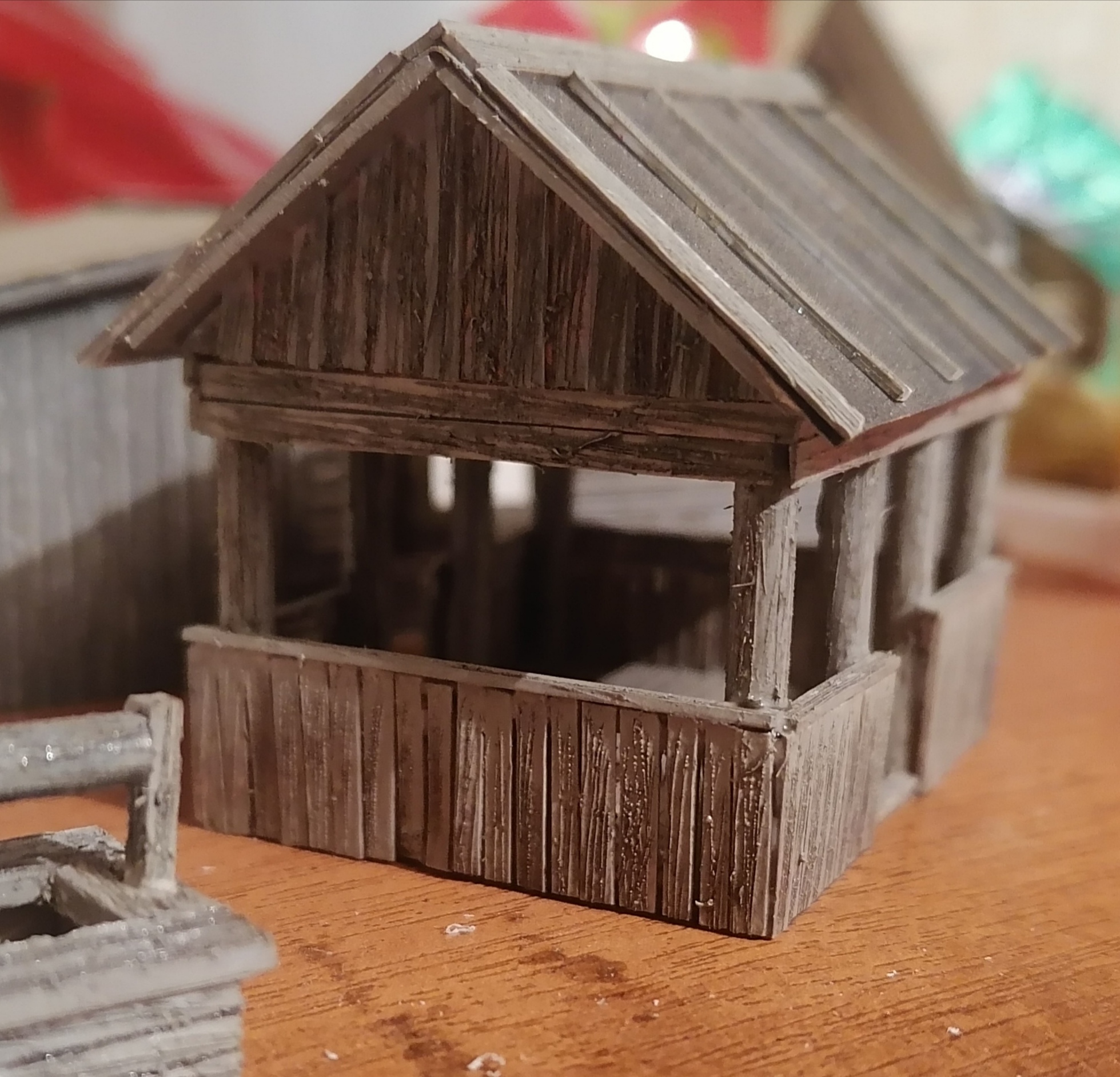 А домик то из полистирол? Агонь как так ровно вышло то. Фактуру дерева не утомительно было?