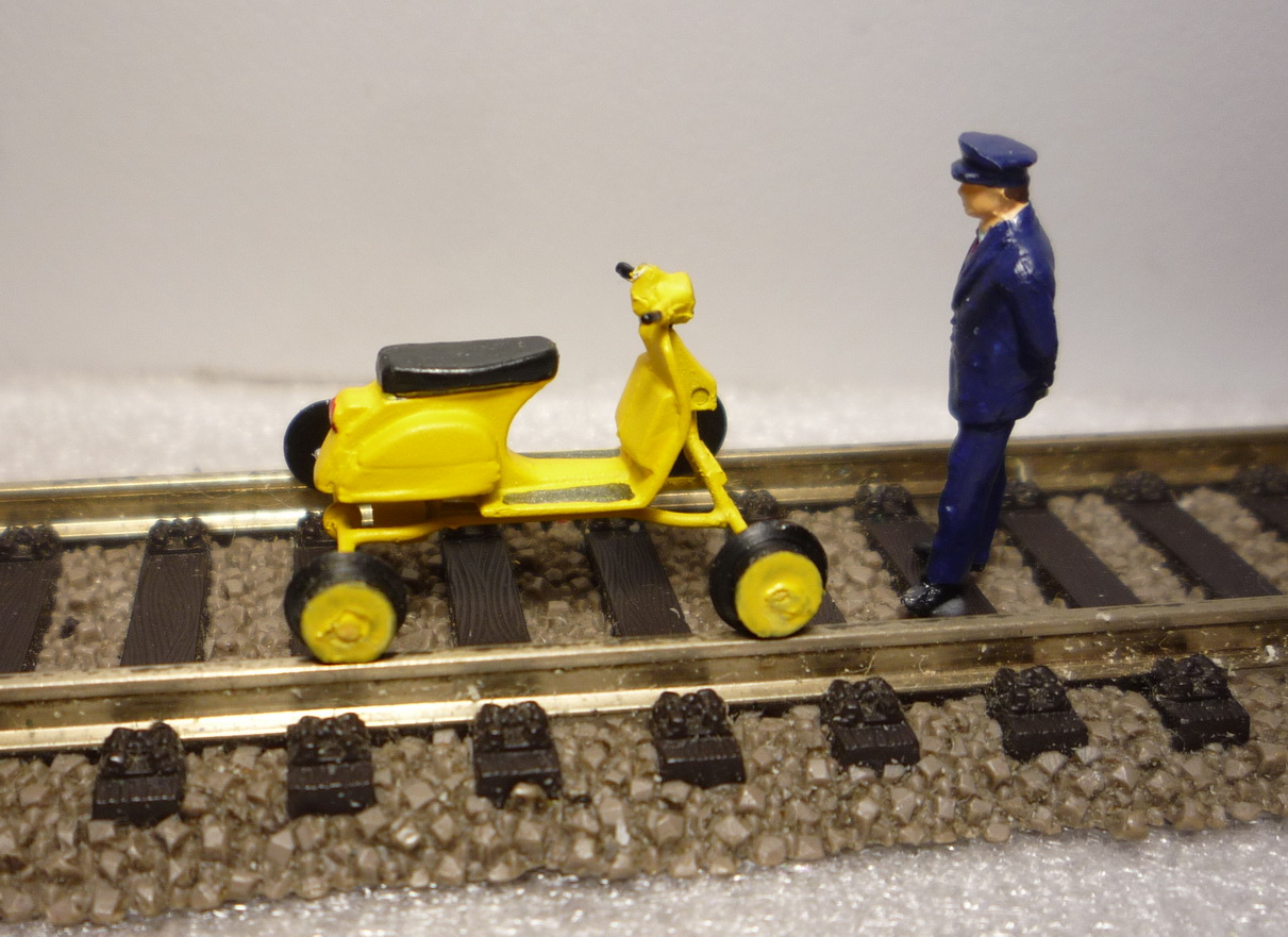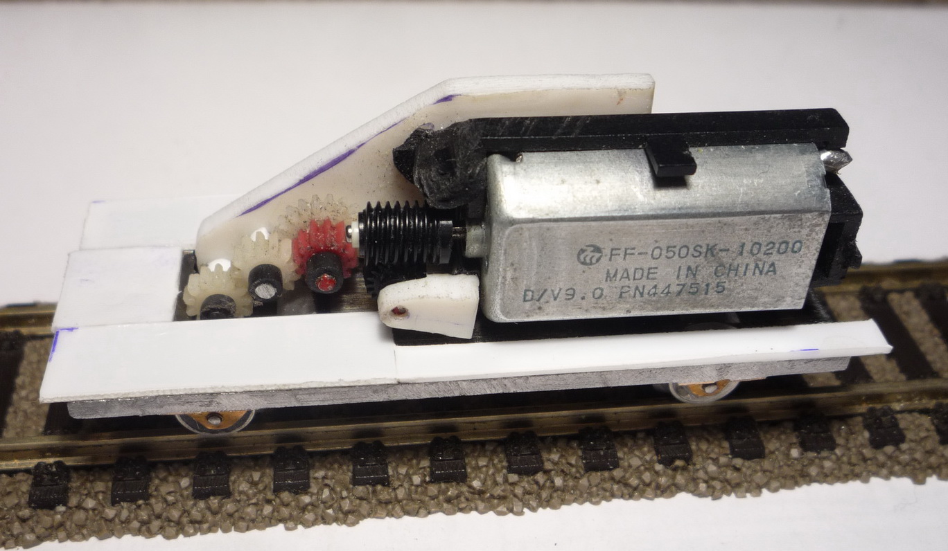 Для утяжеления модели раму выпилил из 2мм листа металла, потом обклею полистиролом. Двигатель от CD-ROMа. Один конец токосъёма - рама, второй - с изолированных от осей колёс.
