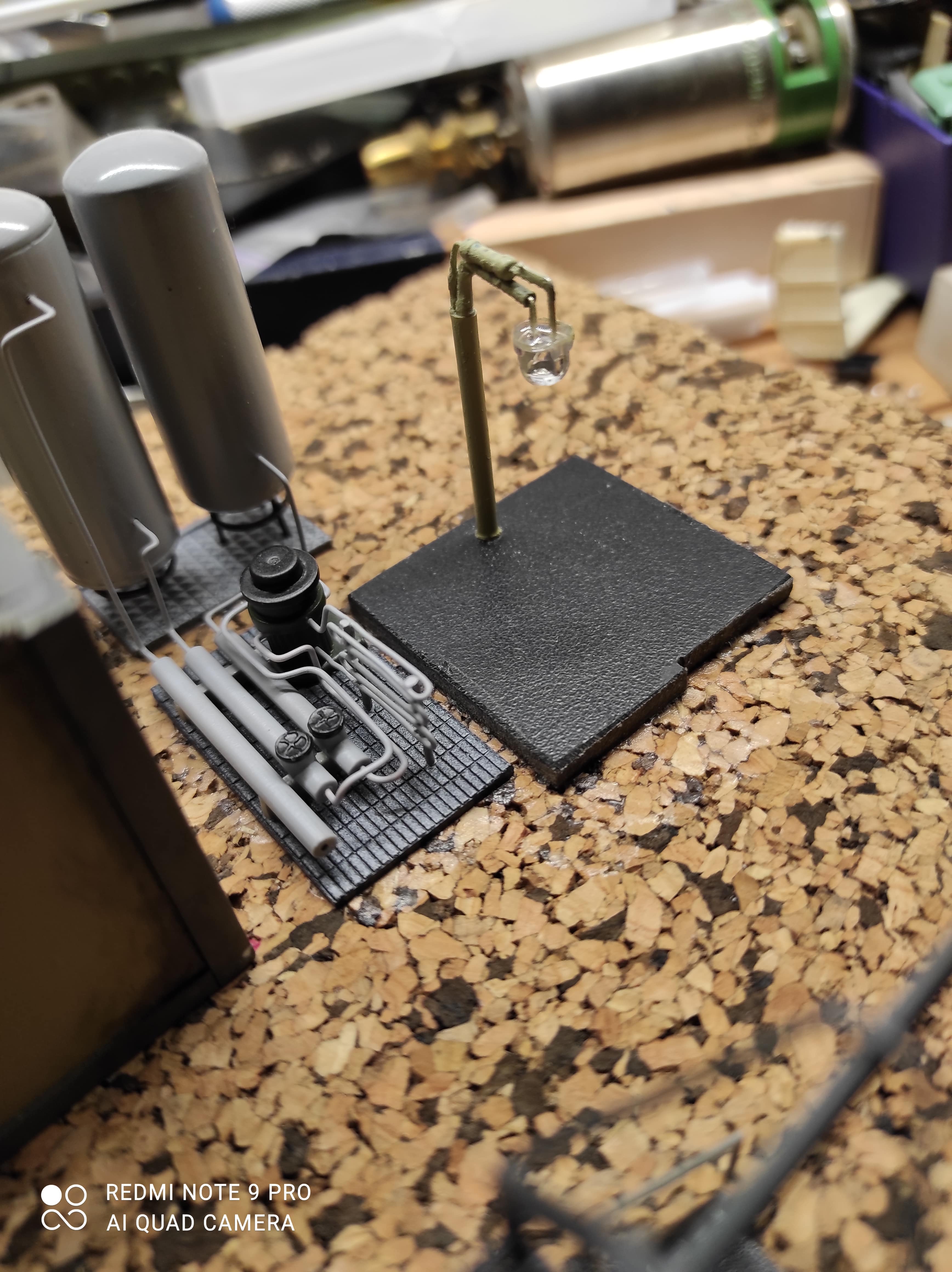 Муза підкинула ідею . Розігнута канцелярська скріпка(мінус)светик+резик+тоненький емальпровод(плюс).вигинаем .камуфлюем устаканюем на місце прописки для компресорої попроще - светик+ватна паличка одіваем кришу сарая. Ну і перевірка що наваялипоки десь так,далі будем думать чим і як засадить та засипать територію ПТОЛа.нарив в закромах шикарних світлодіодів- похожі на старі вологозахищені промсвітильники (захисну сітку робити не буду) Світять теж - люкс. Всередині прозорої колби невеличкий сріблястий абажур з кристалом - при правильному токовому режимі виникае ефект лампочки в скляному захисному кожухі - не хватае лиш кругової захисної сітки.![]()