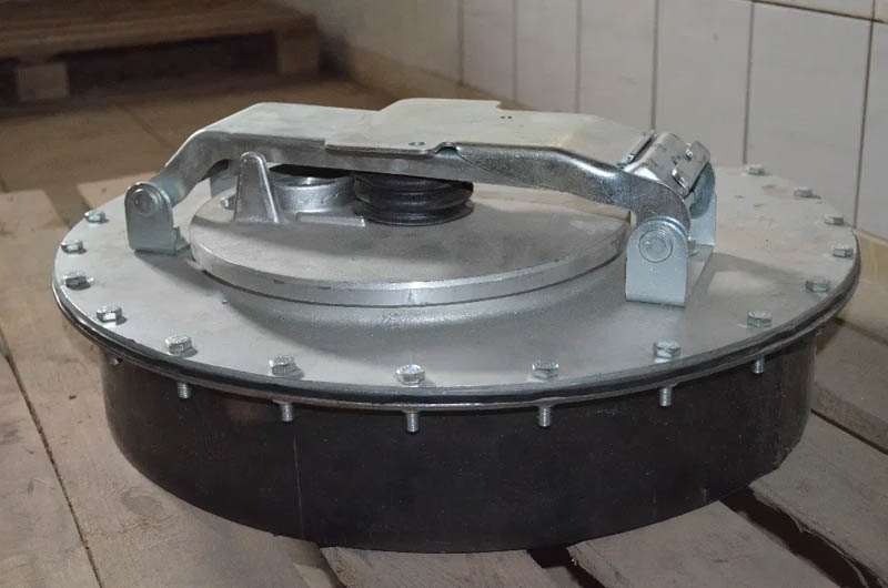 Крышка наглухо прикручена к горловине, но в неё врезана ещё одна горловина меньшего диаметра со своим люком, который открывается уже традиционным способом: