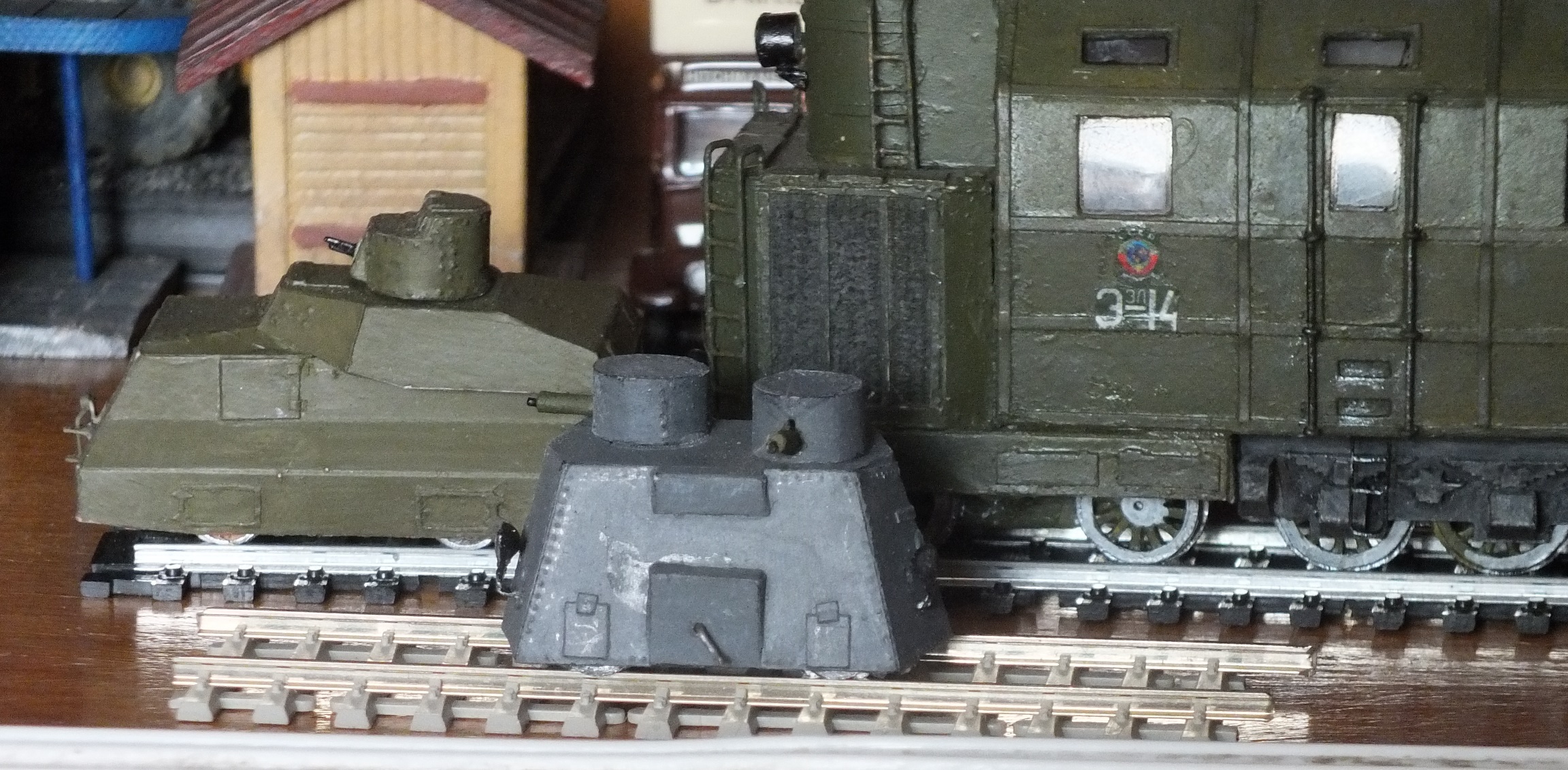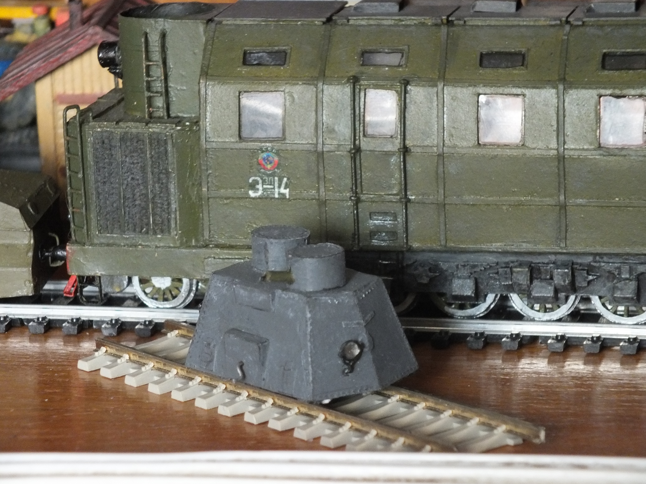С пылу - с жару , как говорится... на днях сваял. Бронедрезина "Стрела". Где - то , не припомню где, читал, что бронетехника периода ПМВ и Гражданской войны окрашивалась шаровой краской.Вот так и покрасил. ЮрСаныч придёт - поправит, если что...Буду благодарен.