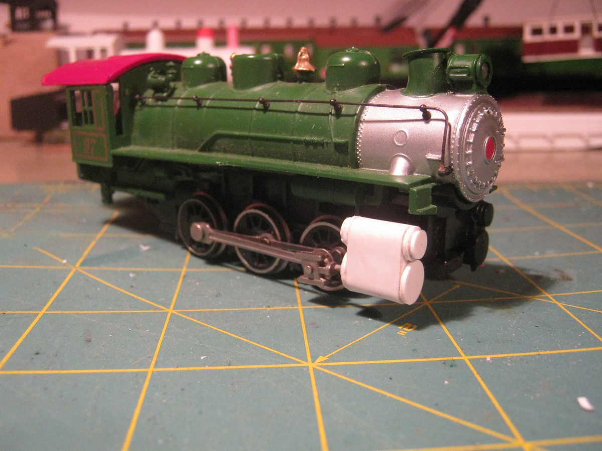 Приобретённый паровоз пока отдыхает, а самодельный надо подтянуть.