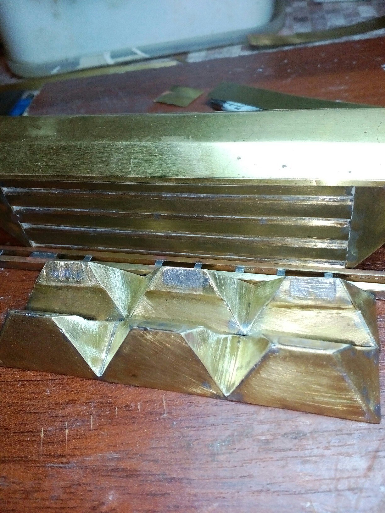 Резал из листа латуни 6мм. Для внутреннего радиуса высверливал коронкой на 54мм отверстие, затем болгаркой вырезал по разметке , далее напильник !