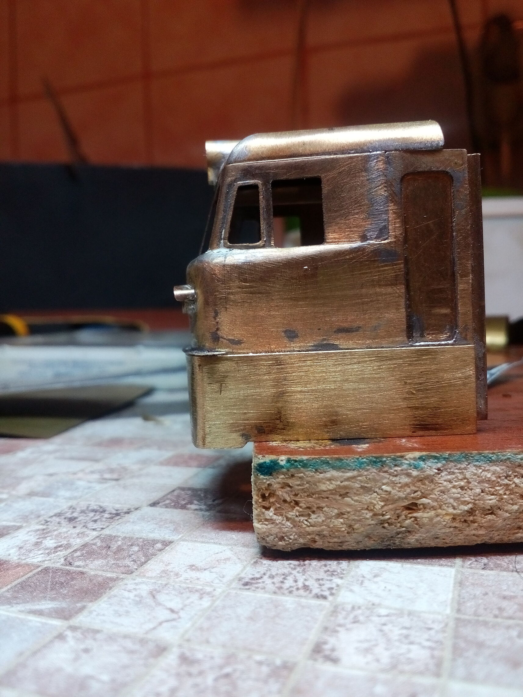 Продолжаю строить.Переделал 2 раз юбку, выдвинул ее вперед на 1мм. Нуи фару доделал. И на пробу сделал кабину типа ЭП2К буквально за 10минут , так сказать посмотреть.