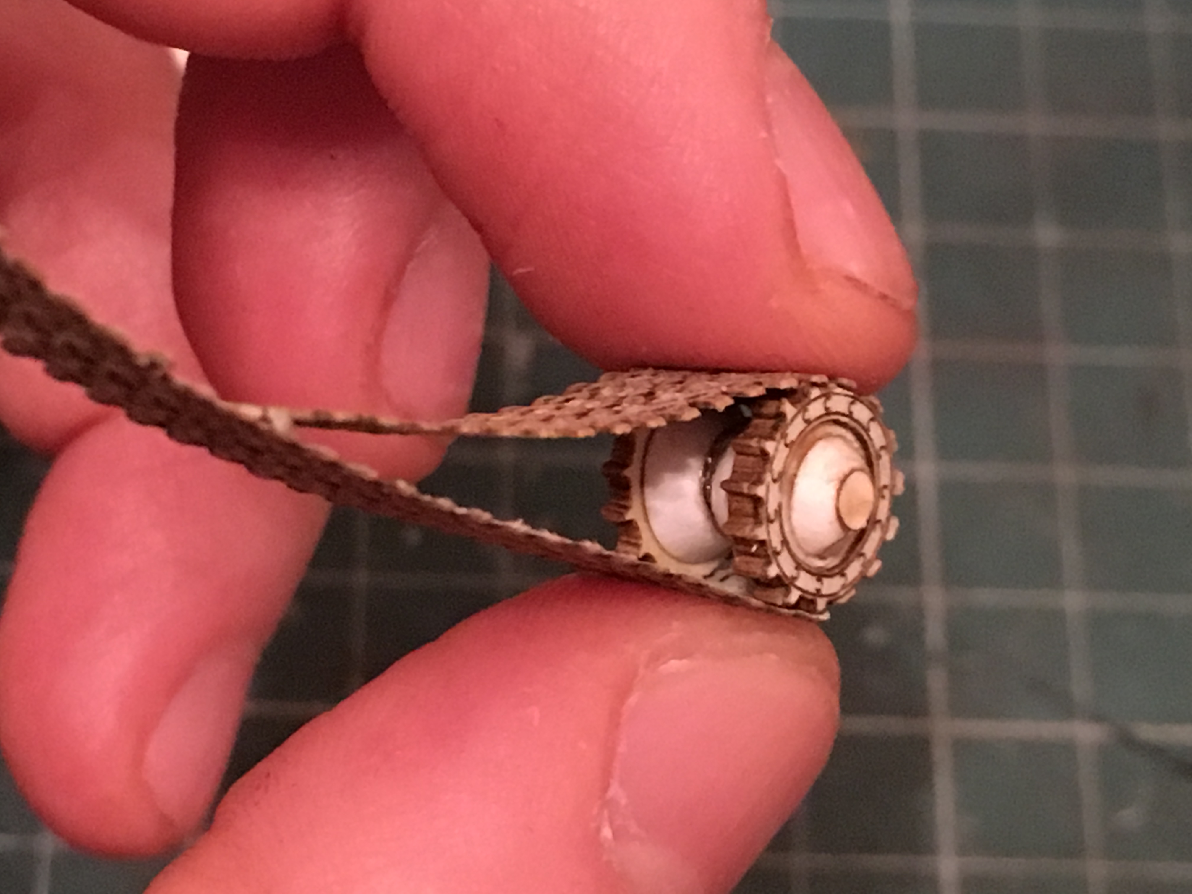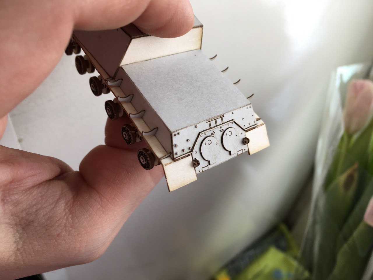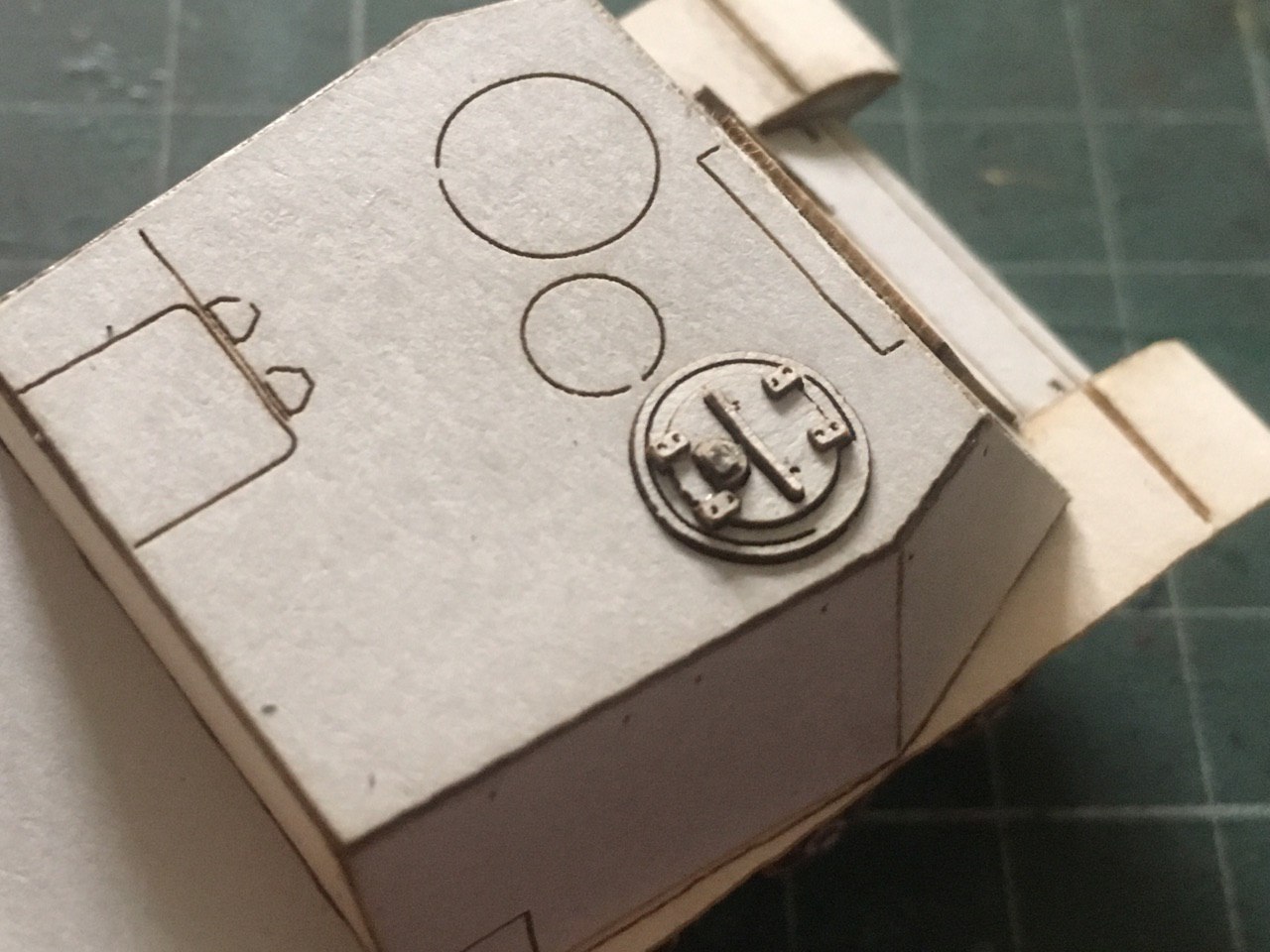 Приветствую. Андрей уже описал процесс. Действительно, делается завёртка нужной формы. Дальше смачиваю водой и формую. Как высыхает, стыки на пва и без клапанов склеиваю. Отверстие закрыто диском. Там выпукло должно быть. Вероятно клеевыми каплями придам форму. Ну и место стыка, стараюсь еще промазывать клеем и прятать, чтоб в глаза не бросался. Слой клея, пои покраске скроет стык, если правильно нанести.Barbosa_ писав:Вот кто освоил лазерную резку, так это Вы Сергей.