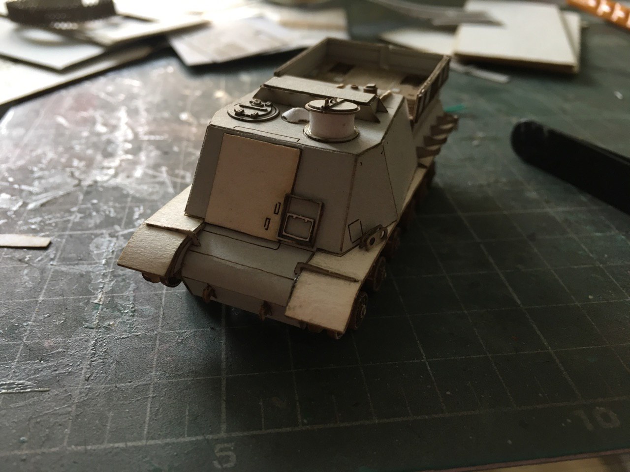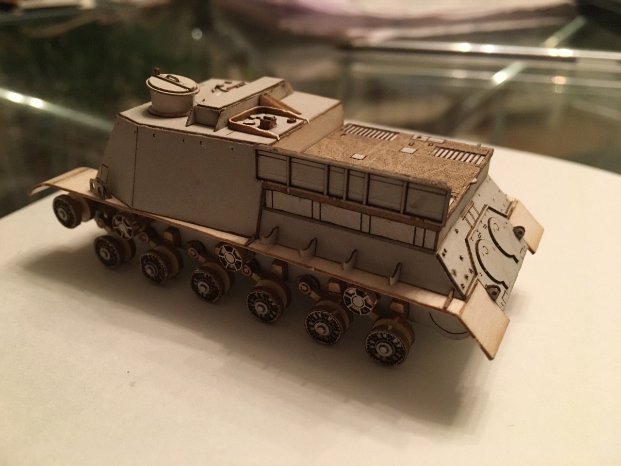 Несколько фото прототипа: Ну а далее, пошло-поехало. Товарищи дали наводку на модели ИСУ-152 из Мира танков в 1/50. Задел взял оттуда, уменьшил в 1/87 и понеслось. Подгонял, добавлял детали, так как БТТ отличается даже люками от ИСУ-152. Ниже результат того, что на данный момент есть.