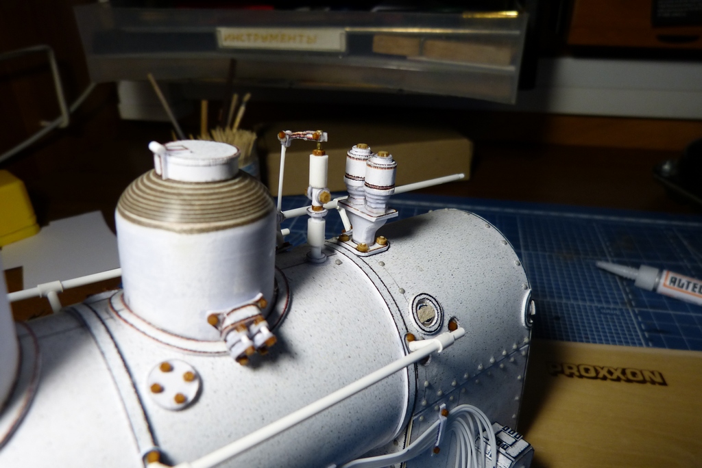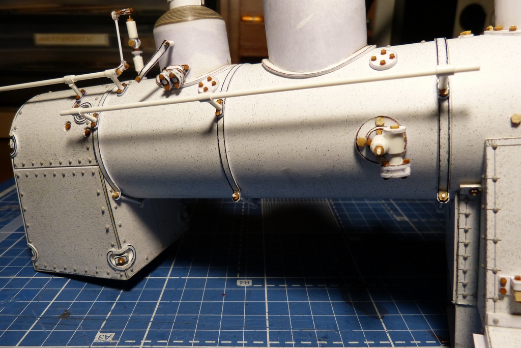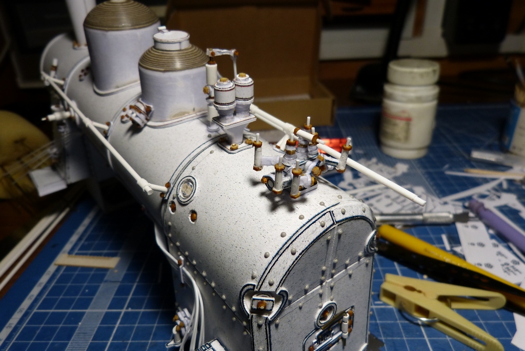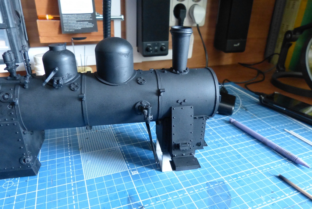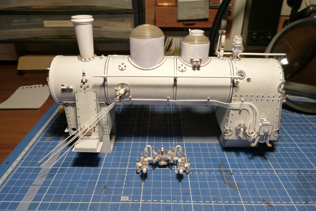 Ну вот с котлом закончено,поставлены поручни,свисток с механизацией и рычаг сухопарника