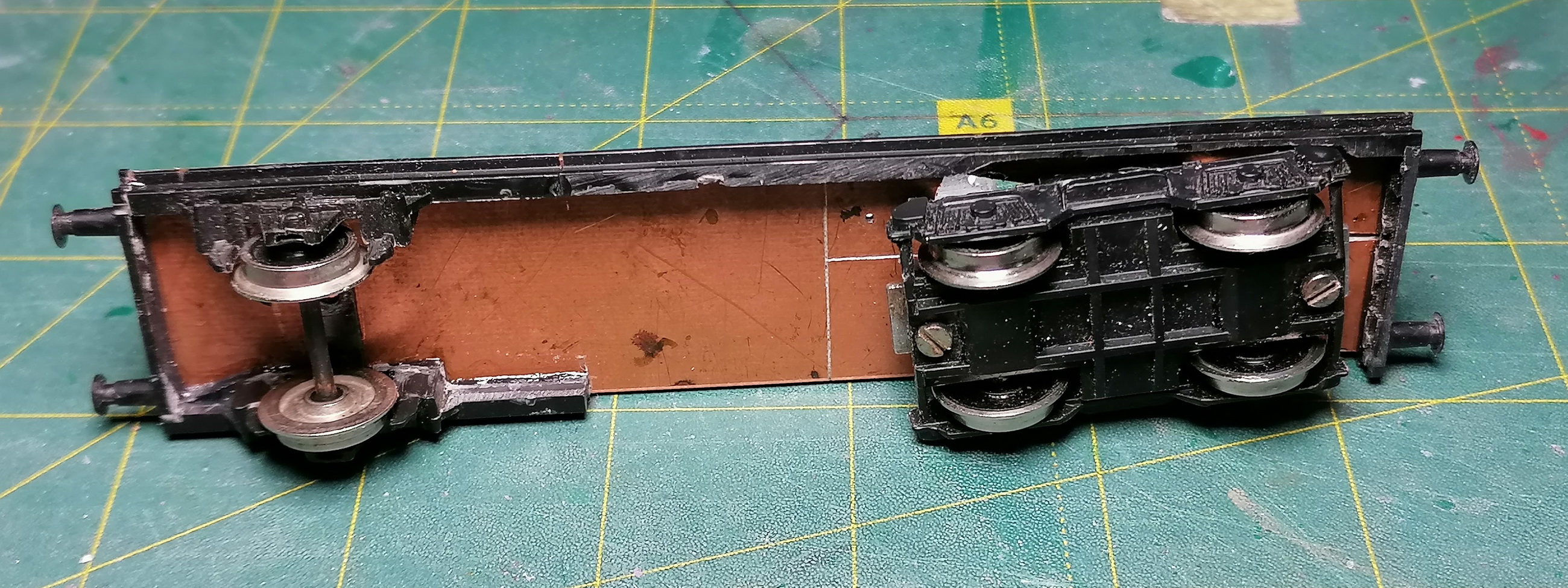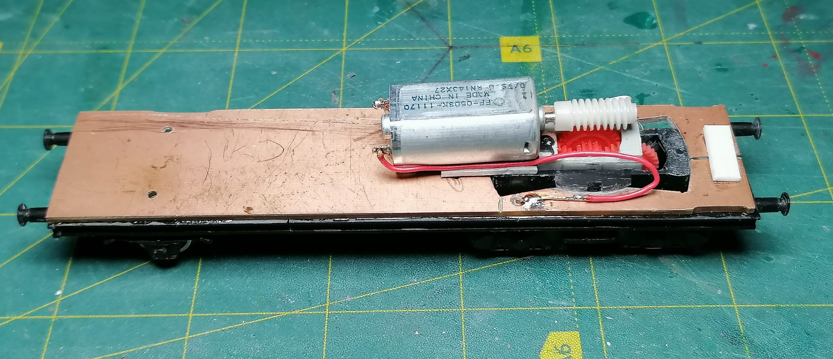 На её изготовление ушло - кусочек фольгированного текстолита, две рамы и одна колпара пиковских грузовых вагонов, свинец для груза, тележка от BR110.
