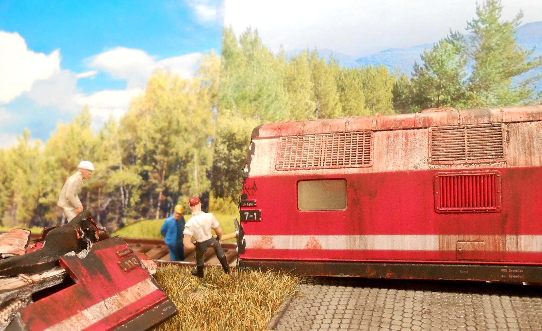 Вот Гюнтер,Вольфганг и Клаус кропотливо крошат махину на куски. Конечно на макете добавлю грузовик,лестницы,газовый резак.