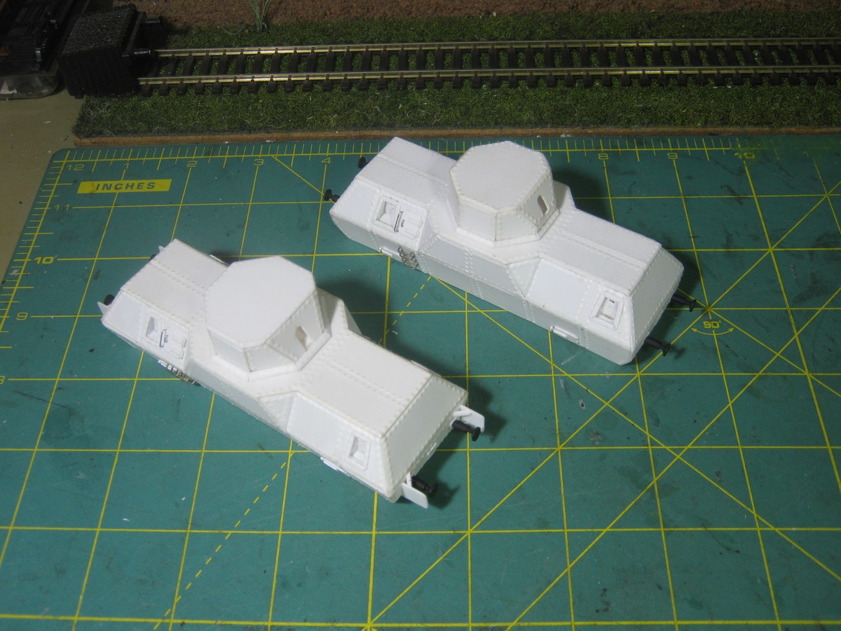 Заложены две бронеплощадки ПВО. Без установок РС. История упоминает, что РС имели лишь подобные бронеплощадки "Козьмы Минина" и "Ильи Муромца". Остальные бепо комплектовались скромнее. Вообще-то исторические реалии таковы, что бепо "Победа" имел всего лишь одну бронеплощадку типа "Стальмост". Но у заказчика имеются свои соображения на этот счёт. Поэтому отметаю сомнения и делаю...