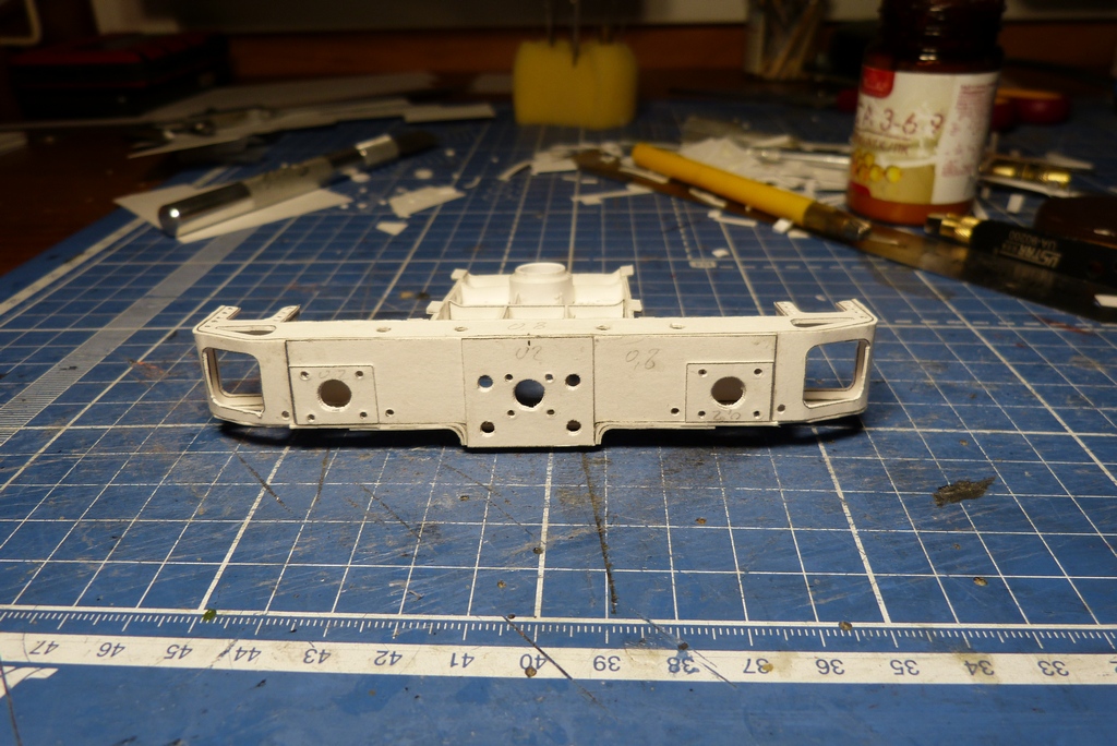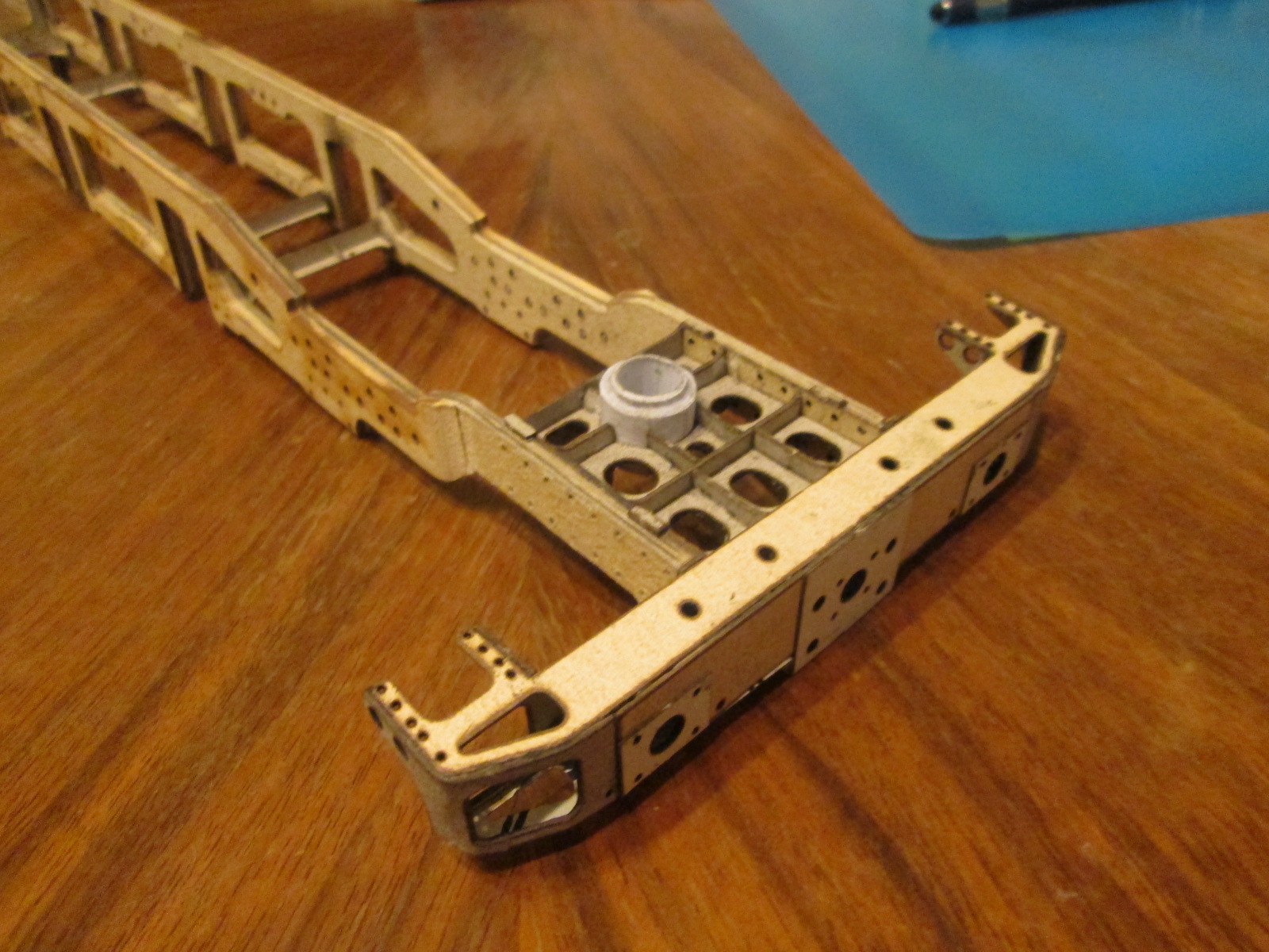 Теперь я,сделал два межрамных креплени,шкворень передней тележки с креплением и установил на рамный лист