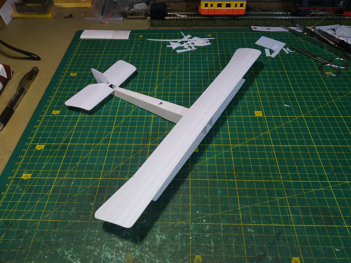 Модель заложена. Первые детали склеены. Пока небольшой анонс. Размах крыла 330 мм, длина около 190 мм.
