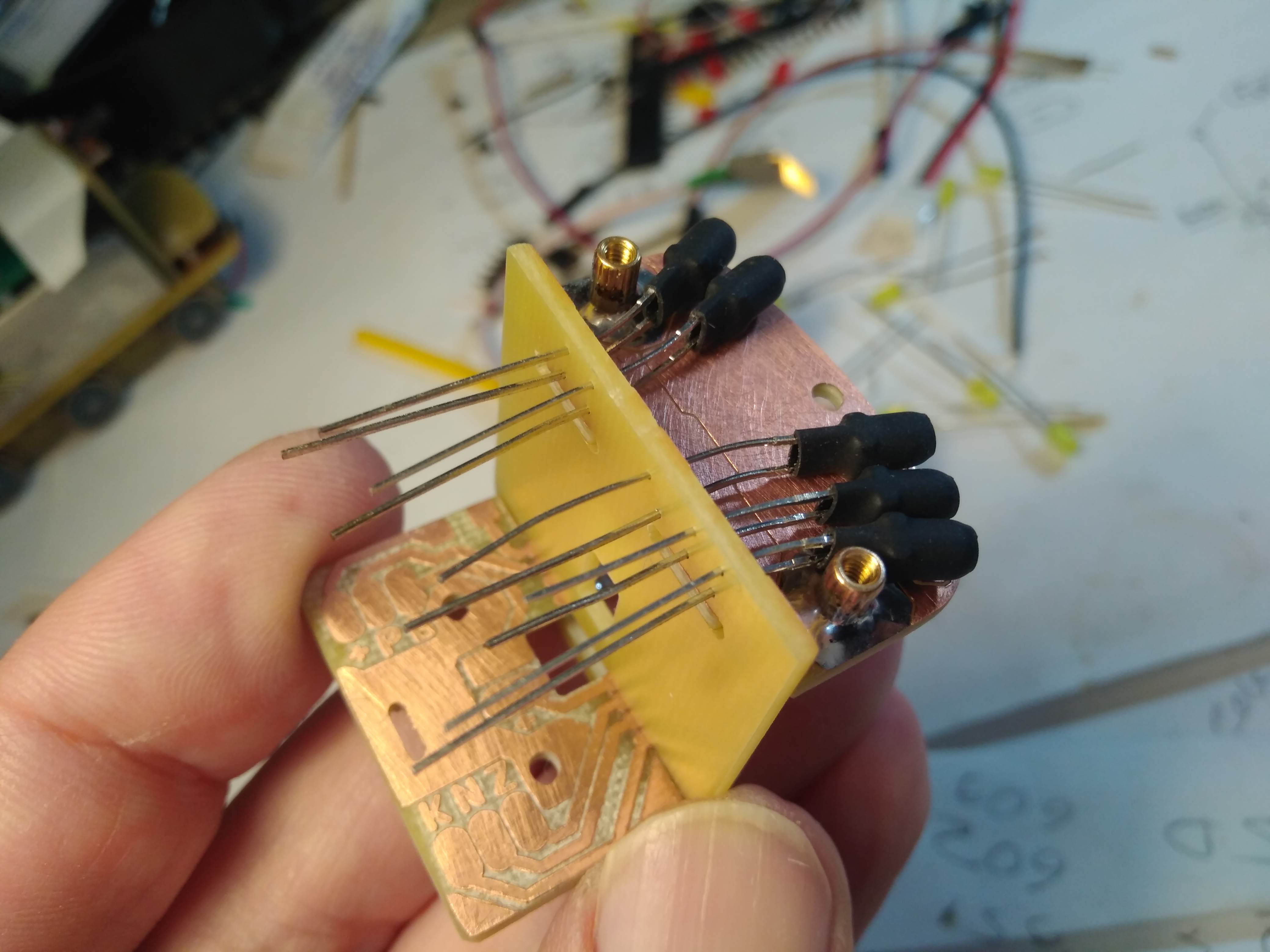 и трассы дорожек к светодиодам теперь проложены на платах, а в первой версии я делал проводами, что было крайне трудоёмко..