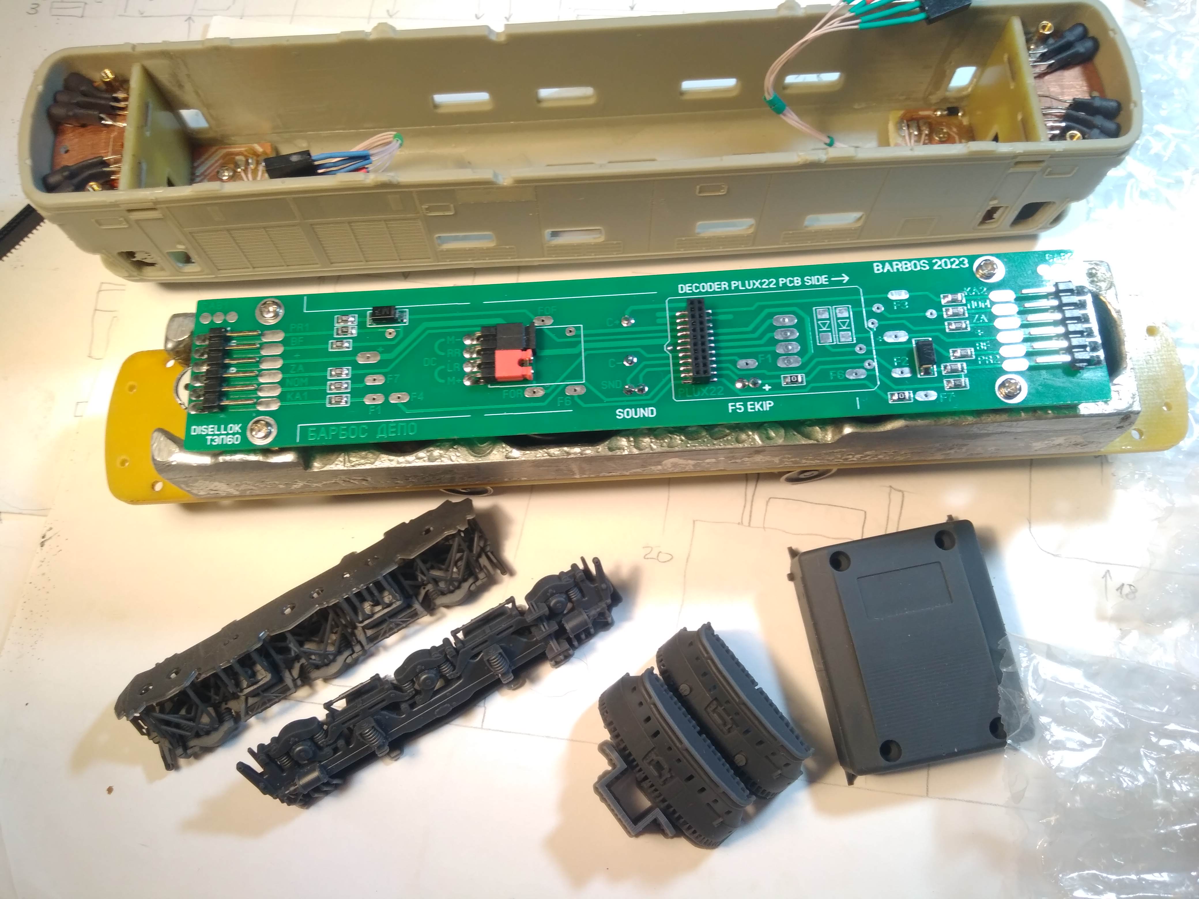 Это плата для ТЭП60 специально сделана,... но вот задумался я, что есть возможность соорудить "Нашу" универсальную плату для отечественных локомотивов, на основе Plux22 разъёма.. Которая была бы понятна "нам", и проста для установки