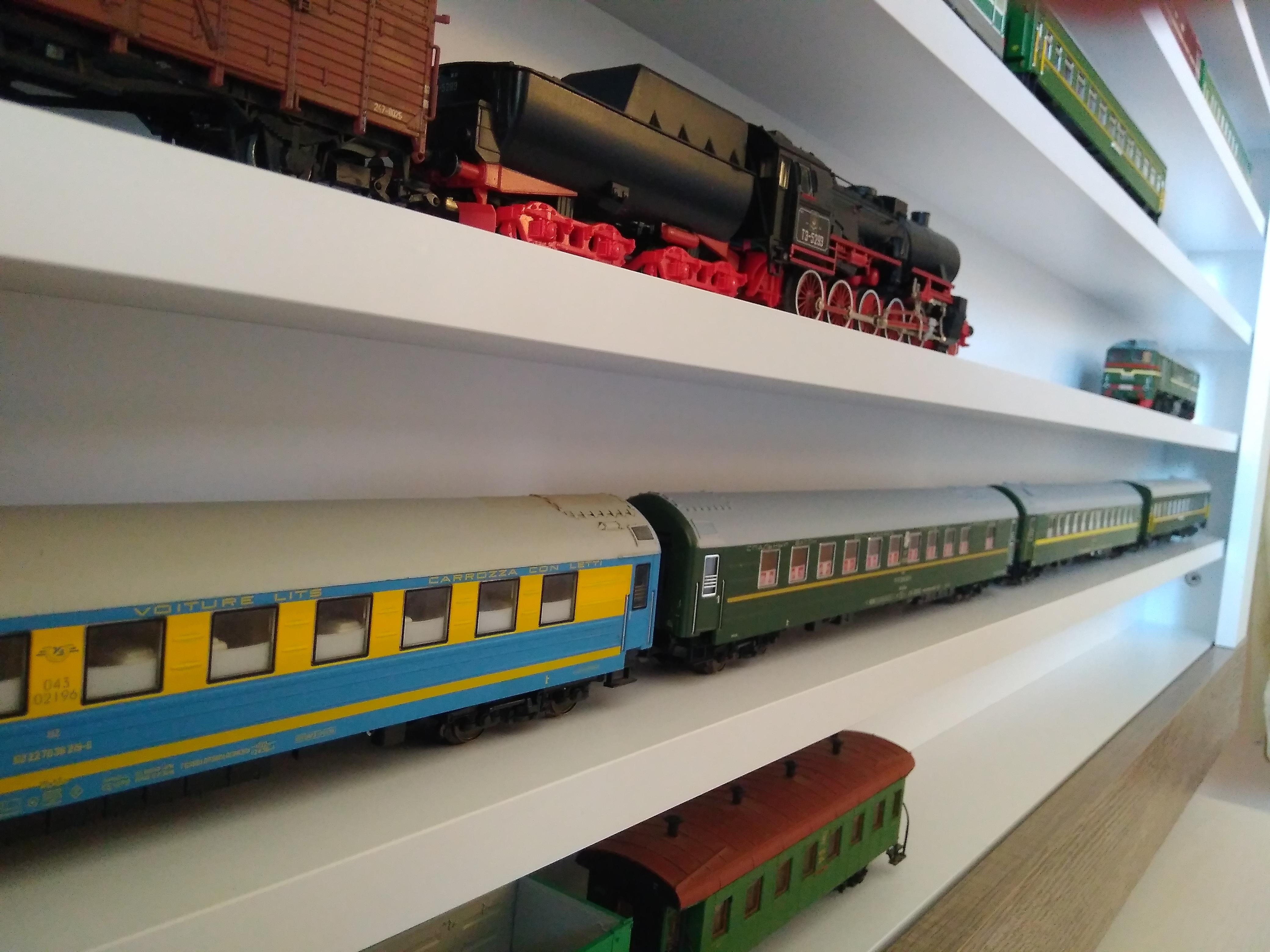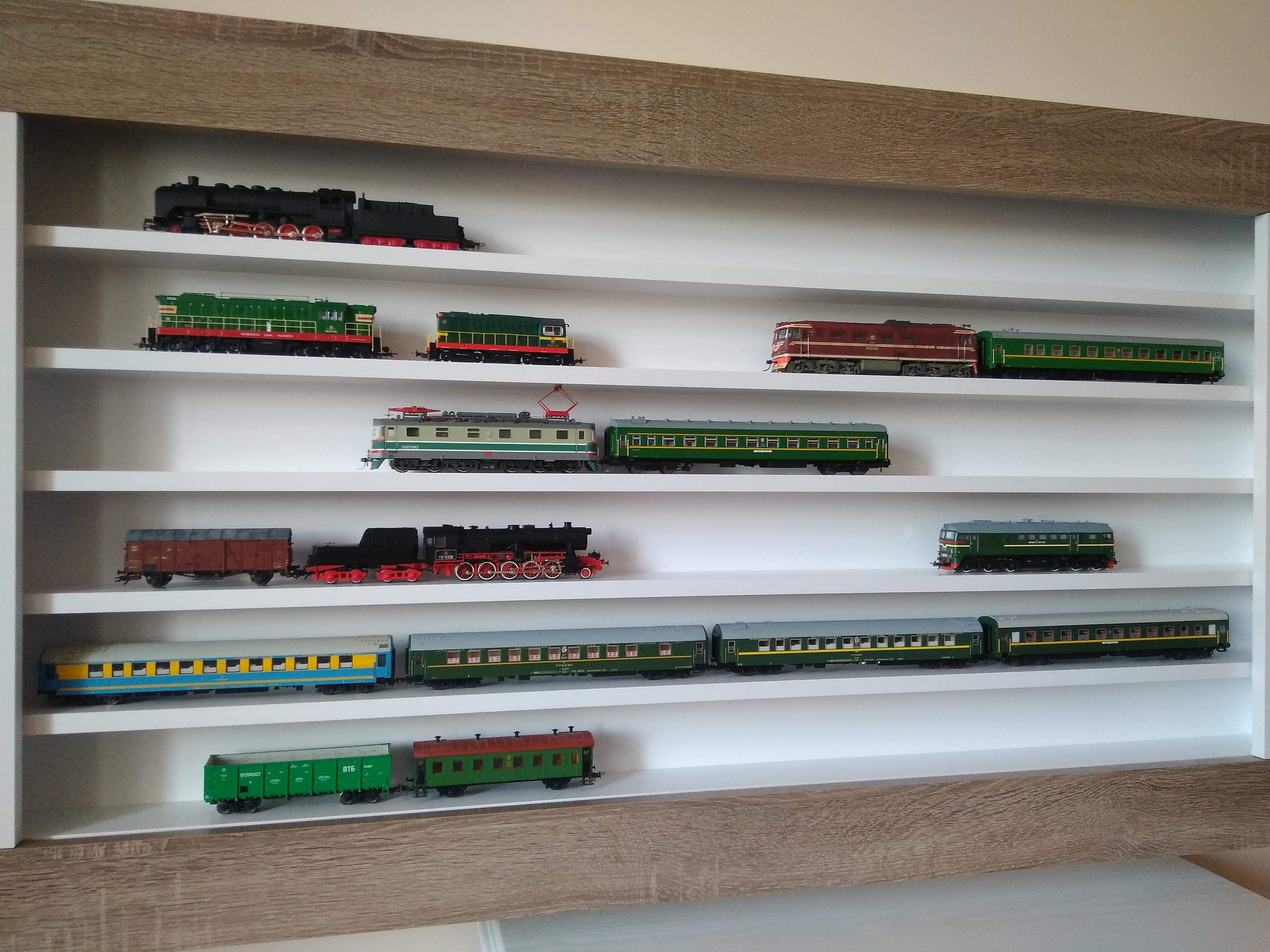 Высота каждой полки 81 миллиметр. Модели мои наконец-то выбрались из своих коробок, а некоторые так из весьма убогих коробок, и расставились на своём новом "Вокзале", что очень меня порадовало