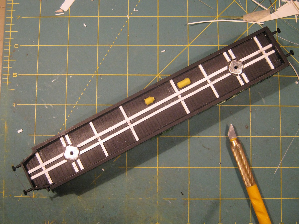 В результате тележки выглядят так. Не могу, как уже упоминал, всё отложить и сконцентрировать силы на этом багажном вагоне, но и далеко со стола не убираю. Перекуры, как правило, бесплодно не проходят...