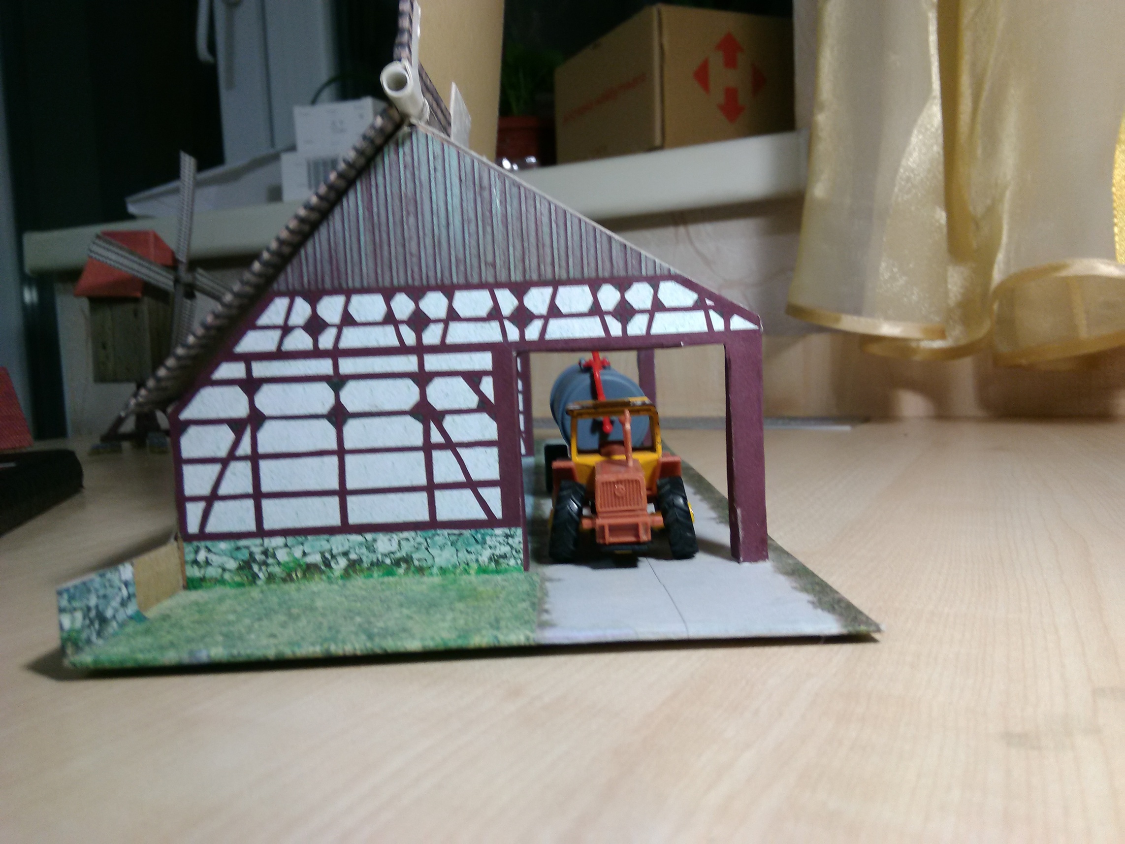 Ну а по поводу домов, я имел ввиду именно "бюджетную" составляющую, чтобы не было затратно как материально, так и по трудозатратам. К примеру на моей водяной мельнице можно сделать черепицу из гофрокартона, ну как на зернохранилище. Подобрать шаг черепицы (все равно не совпадет по всей площади, пришлось бы делать кусками) распечатать, потом обклеить гофру черепицей - эффект получится классный, черепица будет как живая, вид дома совсем другой, но времени на ее изготовление уйдет... Тут все сводится к тому что мы подразумеваем под словом "бюджетная" и какие цели преследуем. Я так думаю.