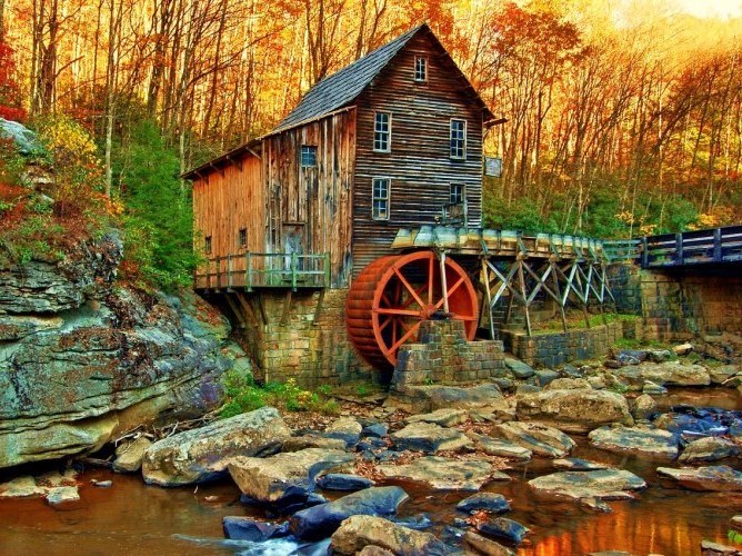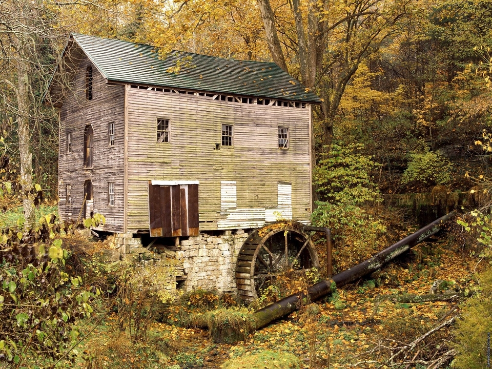 А вот водяная мельница. Все тоже - картон и развертка. Колесо делалось из того же что и мост. Состарил следующим образом - развел спиртом небольшое количество черной краски для струйного принтера и этим раствором прокрасил несколько раз колесо. Эффект на фото.
