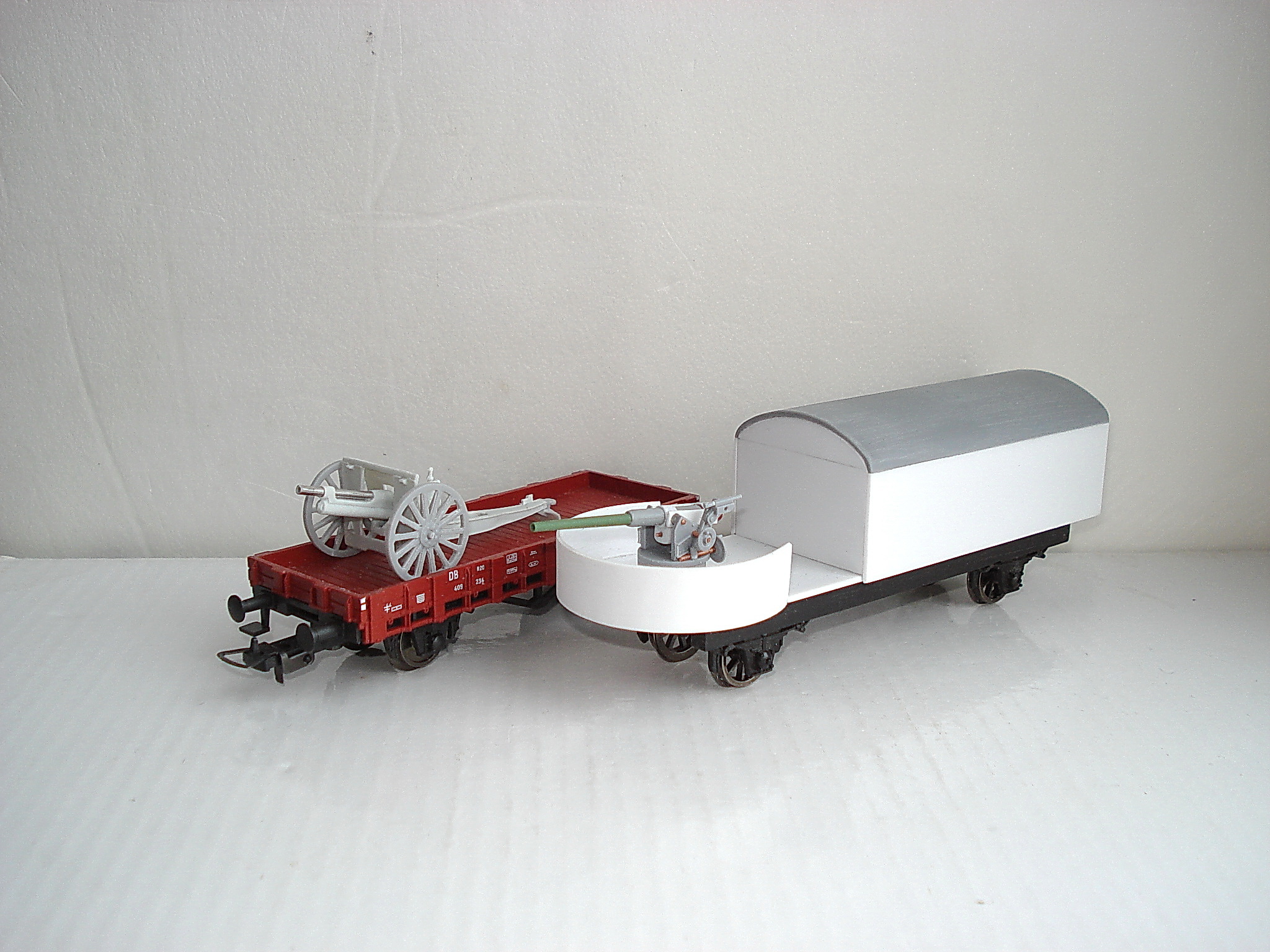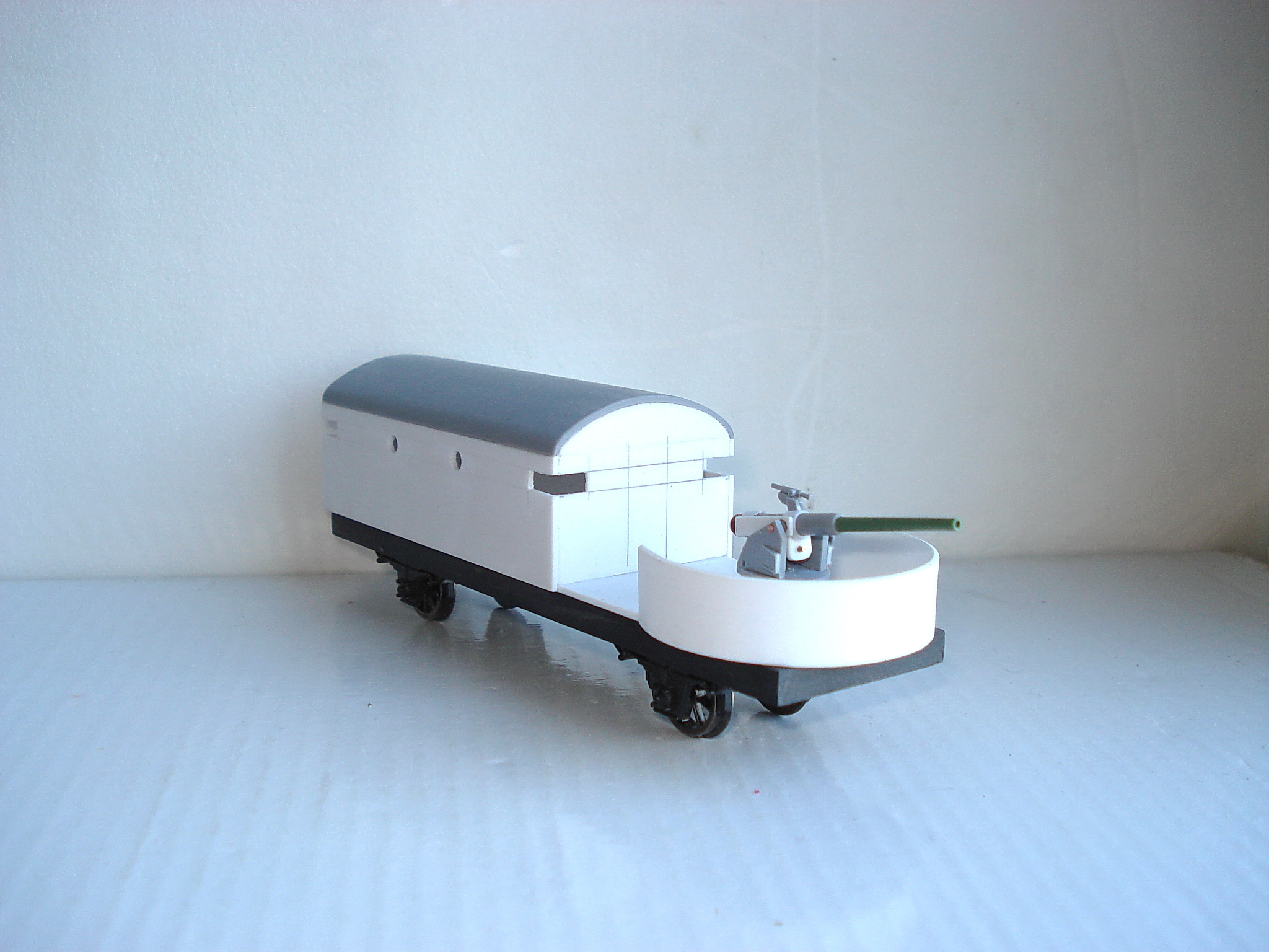 За основу броневагона взят Пиковский семиоконник,с него и крыша и рама,а пушка это в 35 масштабе немецкая противотанковая Pak-37,но от нё мало ,что осталось.Делал 75мм.морскую пушку Канэ.На сколько получилось это уже вопрос.