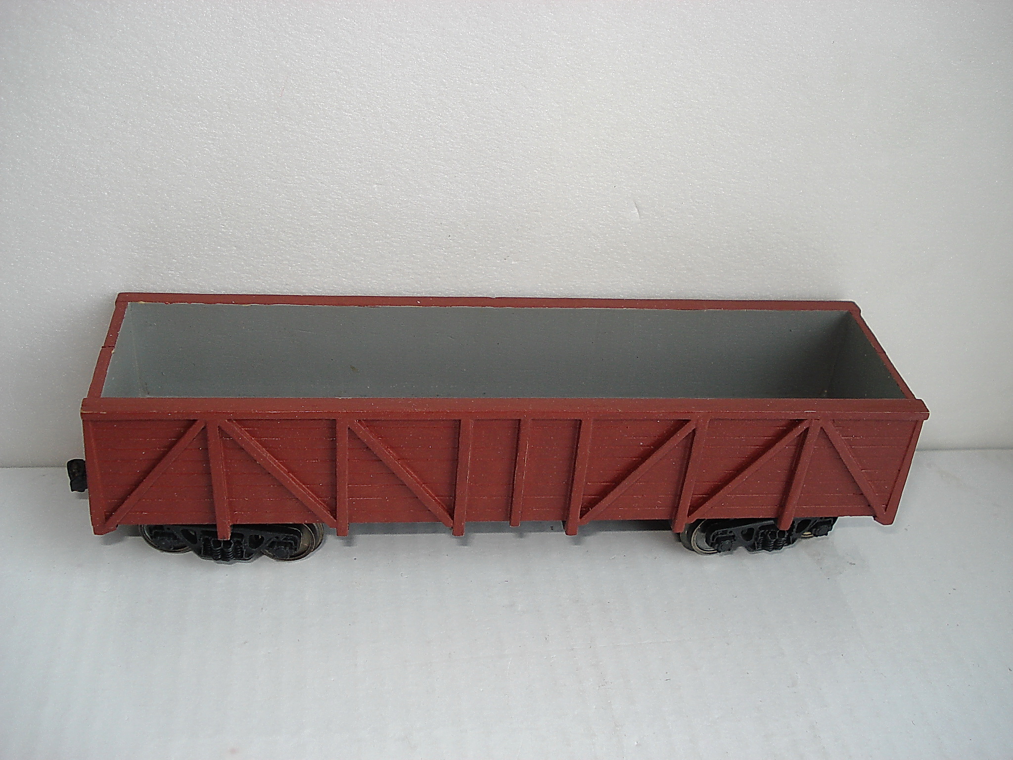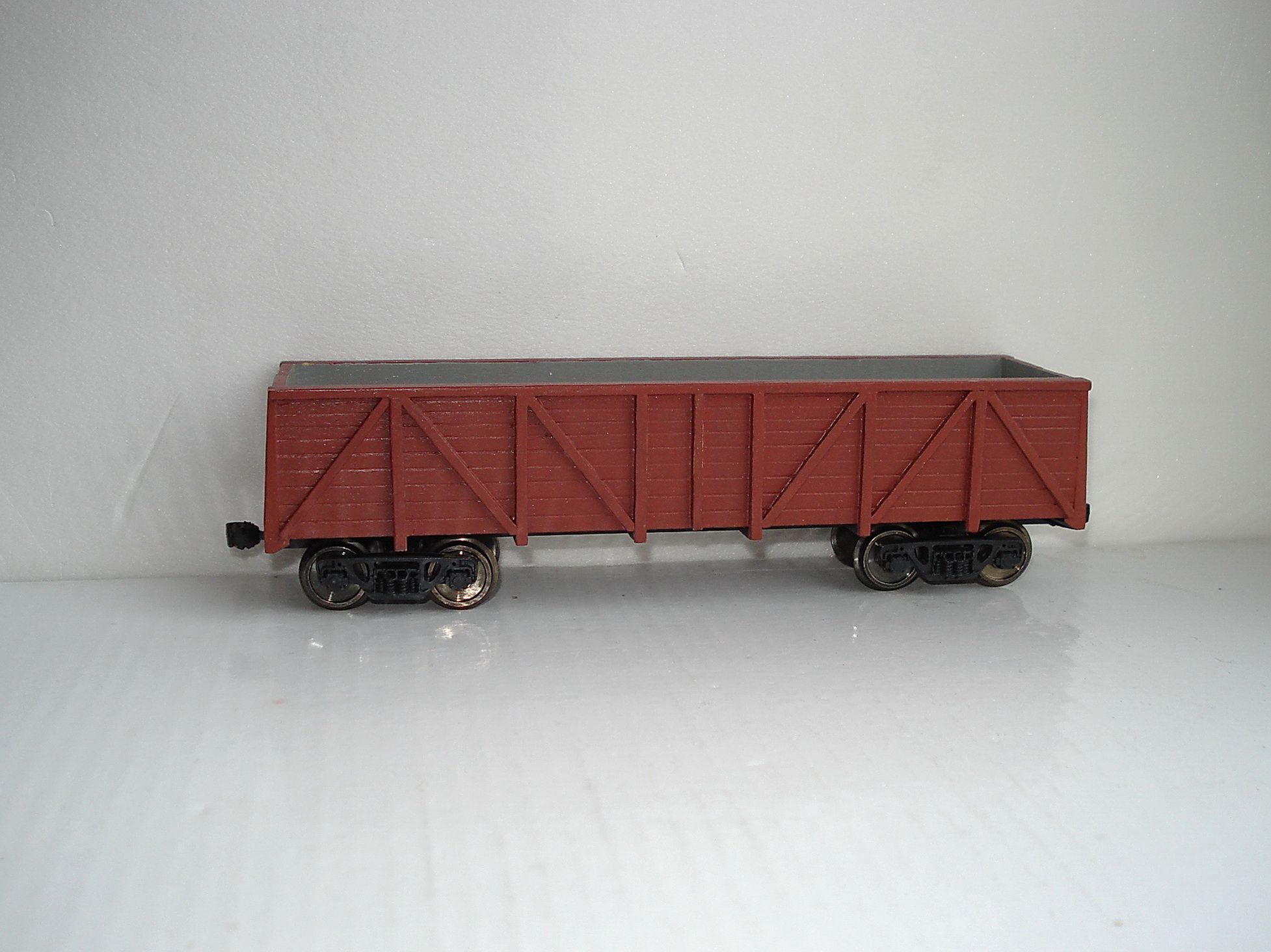 Да,ходовки серые хорошо видно на полке,а чёрных не видно.А полувагон коричневый из спичек сделан и канцелярских деревянных линеек.Раньше на нём и тележки тоже из спичек были ,потом поменял на фирменные.