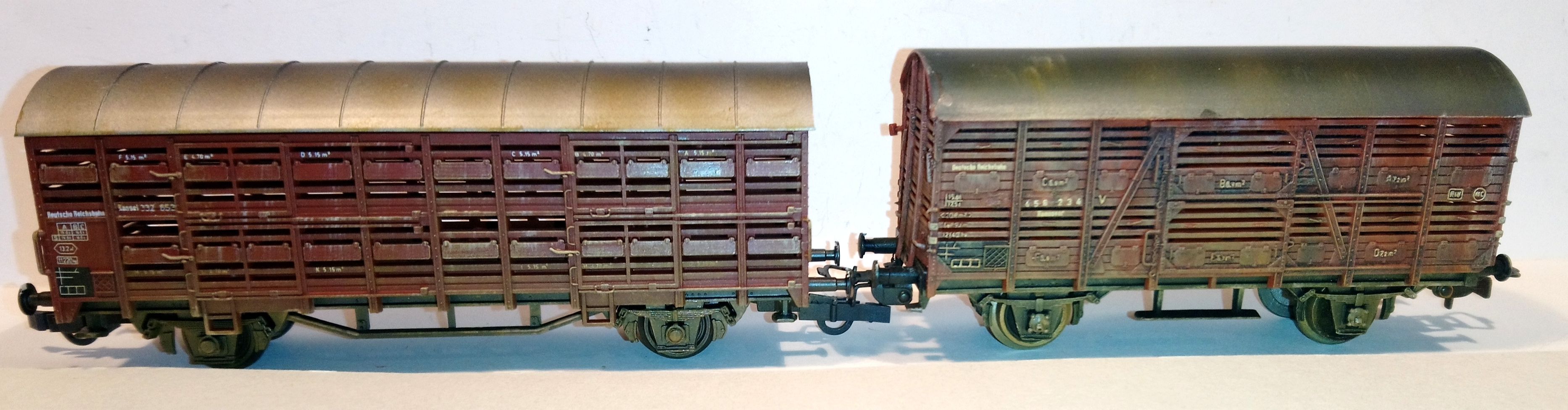 Суперово, мне нравится, как живые! Всегда мечтал о вагонах не блестящих от лоска, а тем более учитывая, что это скотники, а живые и со следами эксплуатации, здорово! Молодец!